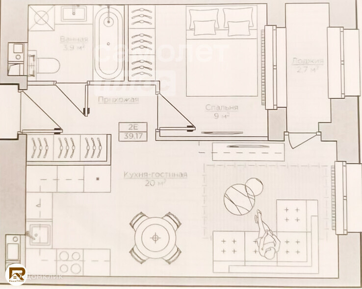 Общая площадь 39 м2