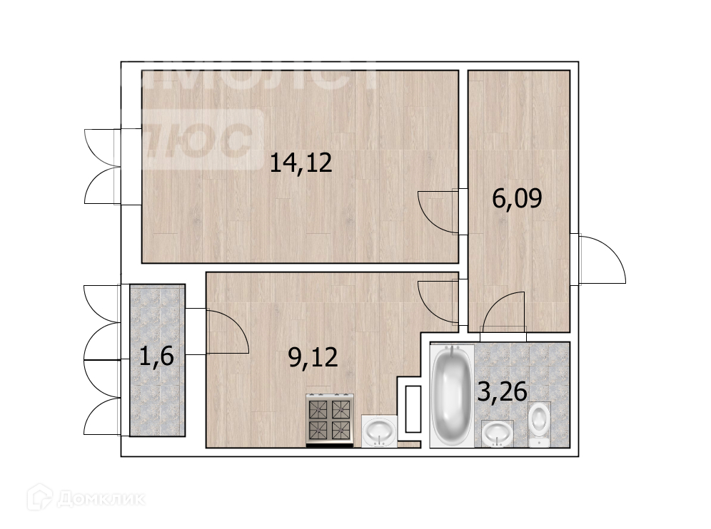 Жилая площадь 14.1 м2