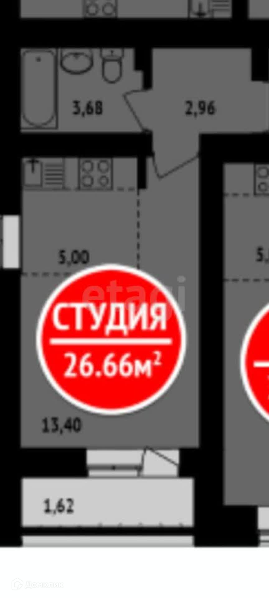 Общая площадь 26.6 м2