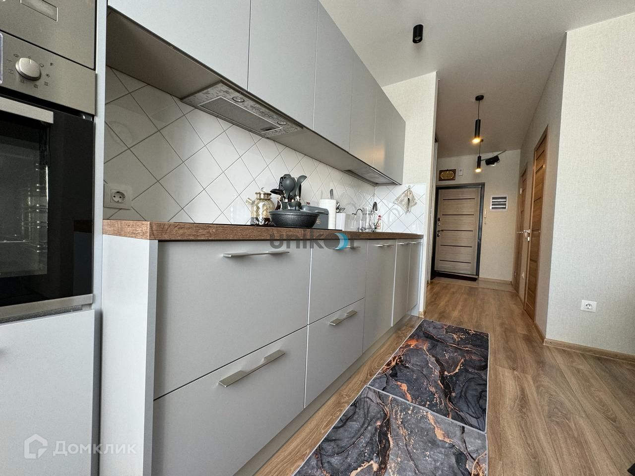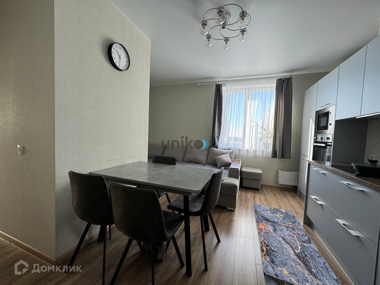 в квартире сделан качественный ремонт со вкусом: на полу ламинат, натяжные потолки со светильниками, хорошие двери, новые немецкие пластиковые окна, встроенная кухня Лорена со всей необходимой техникой, встроенные вместительные шкафы;