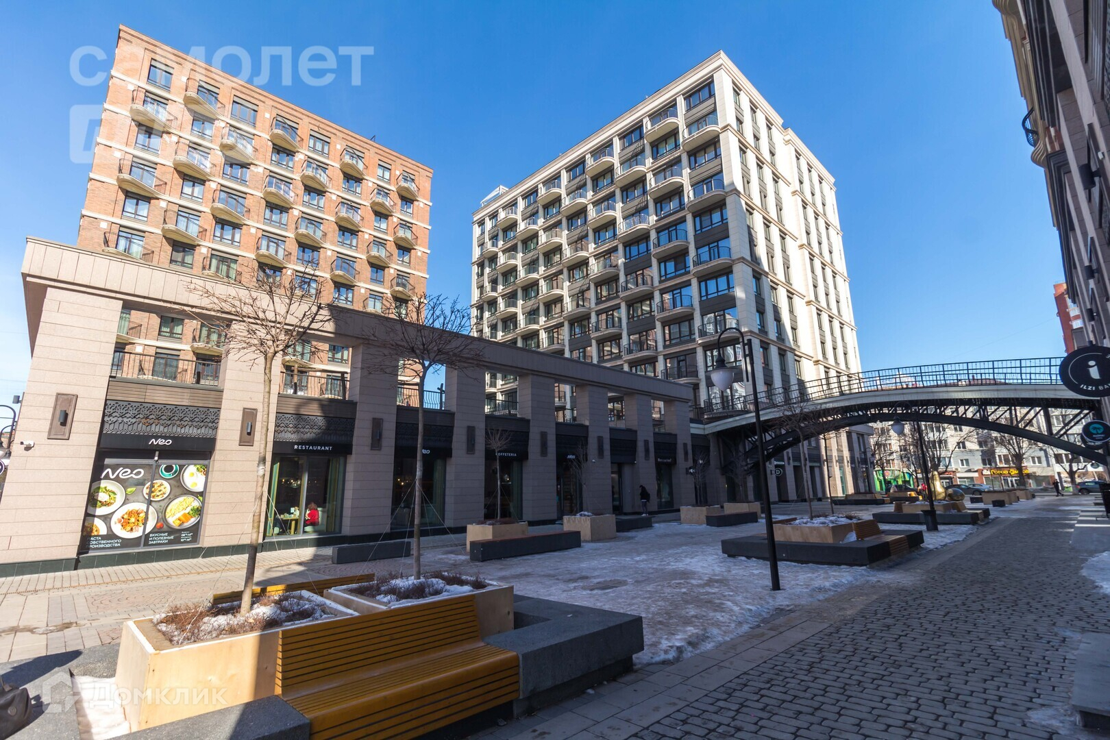 Развитая инфраструктура на территории ЖК (рестораны, кофейни, бьюти салоны, магазины, парк с озером и зоной для пробежек и езды на велосипеде).