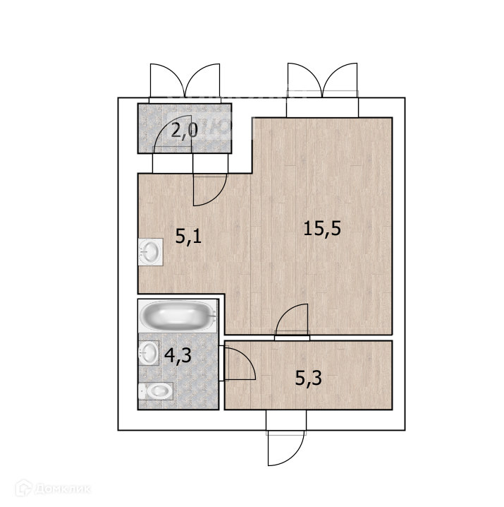 Общая площадь 31.2 м2