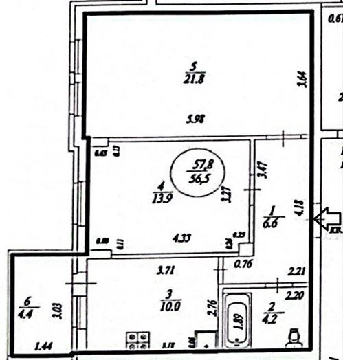 Общая площадь 56,5 м2 + балкон 4,4 м2 = 60,9 м2
