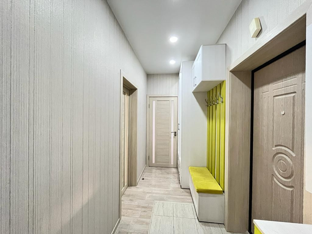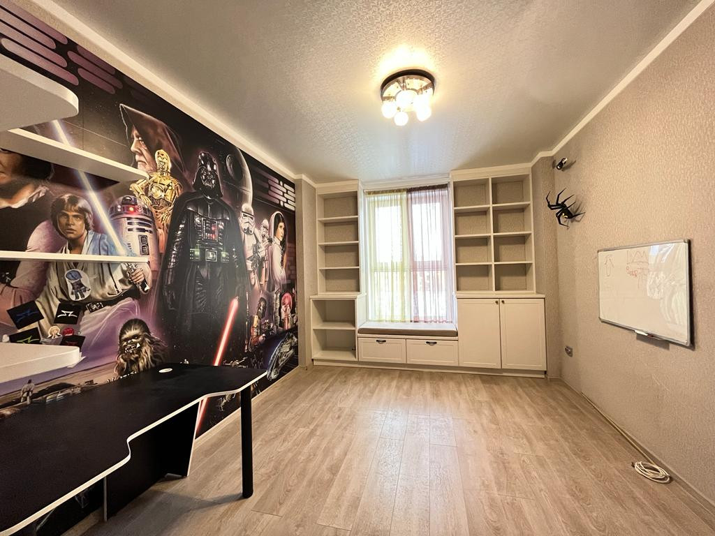 В квартире выполнен хороший ремонт - делали "для себя" - выровнены стены, залит пол, заменены радиаторы отопления, теплый пол в ванной и прихожей, заменено окно в детской.