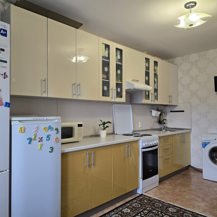 Общая площадь квартиры 38,6 кв.м, жилая площадь 15,3 кв. м. с выходом на лоджию. Просторная кухня площадью 15 кв.м, что вполне позволяет использовать ее как кухню - гостиную. Кухня и жилая комнаты расположены по разные стороны коридора, поэтому окна квартиры выходят во двор и на улицу, что очень удобно для семей с детьми. В квартире поэтому еще и в самую жаркую погоду комфортно, можно спокойно открывать окна, и не требуется кондиционер.