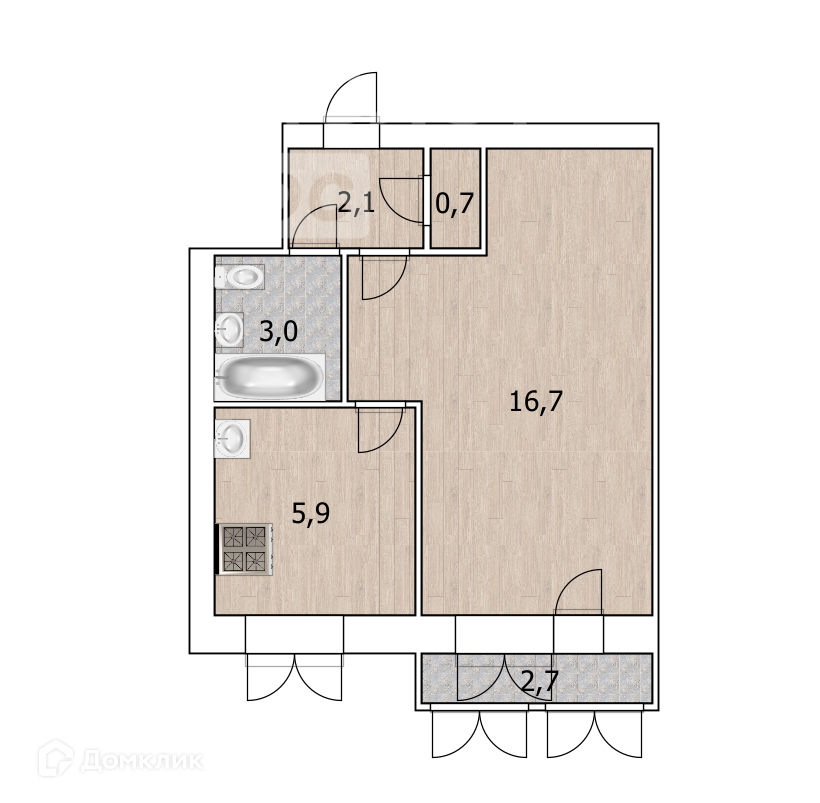 Общая площадь 27 м2