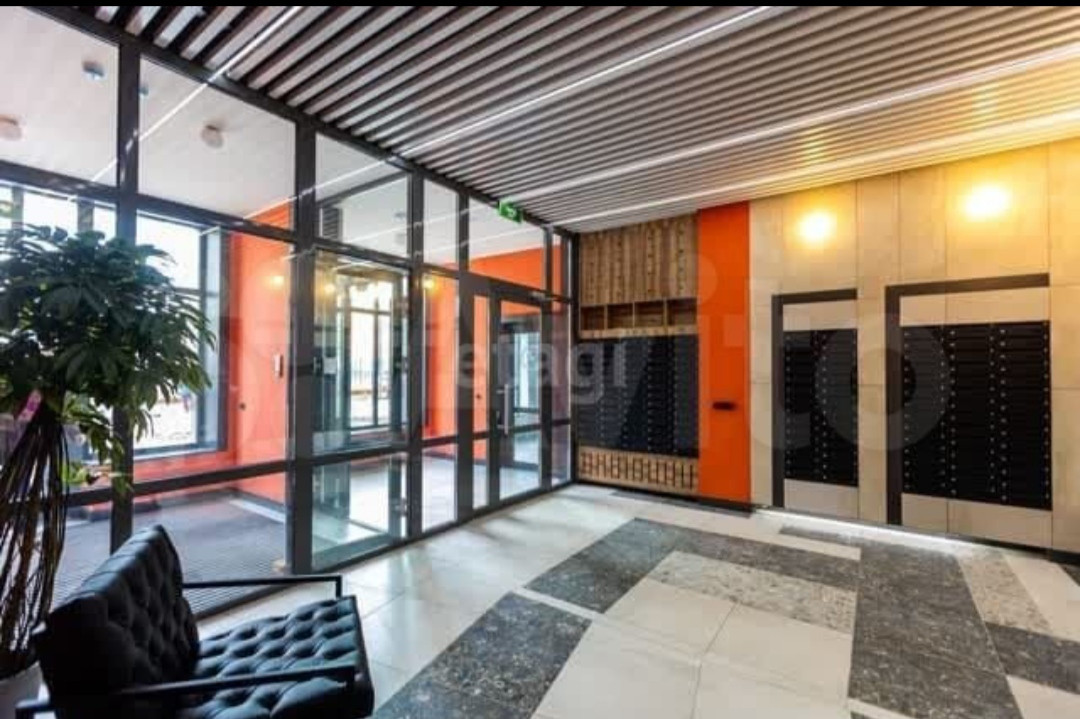 Прозрачная входная группа в подъезд, просторный холл первого этажа выполнен в спокойных, теплых оттенках с использованием качественных отделочных материалов. 3 скоростных лифта гостиничного типа марки Отис.