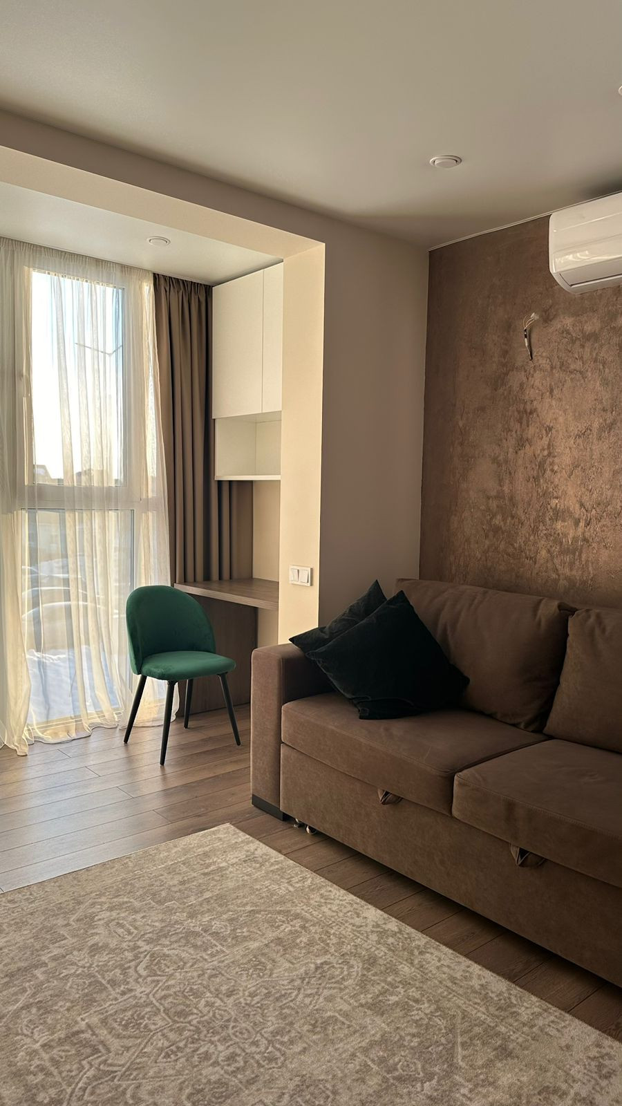 Продается  1 комнатная квартира (евродвушка, 1+), ул. Артезианская, д.7, этаж 2/6,лоджия,кирпич. Дом 2019 года, имеется лифт.  Квартира в отличном состоянии: сделан шикарный дизайнерский ремонт, все материалы высокого качества, ремонт делали для себя. Кафельная плитка под мрамор в санузле, встроенные светильники, ламинат, лоджия застеклена и утеплена, встроенный кухонный гарнитур со встроенным холодильником и посудомоечной машиной. Встроенный шкаф в прихожей, кондиционер, двуспальная кровать - все остается! Мебель новая, качественная!  Все подобрано в единой цветовой гамме, стильно красиво и очень уютно! Квартира не требует никаких вложений, заезжай и живи. Дом расположен в красивом экологически чистом месте (м-р "СОСНЫ"), в 10 мин езды до пр.Октября (универмага Уфа). Около дома много зелени, детская площадка, просторная парковка. Один взрослый собственник. Возможна ипотека.Все юридическое сопровождение берем на себя. Помогу оформить ипотеку. Торг.