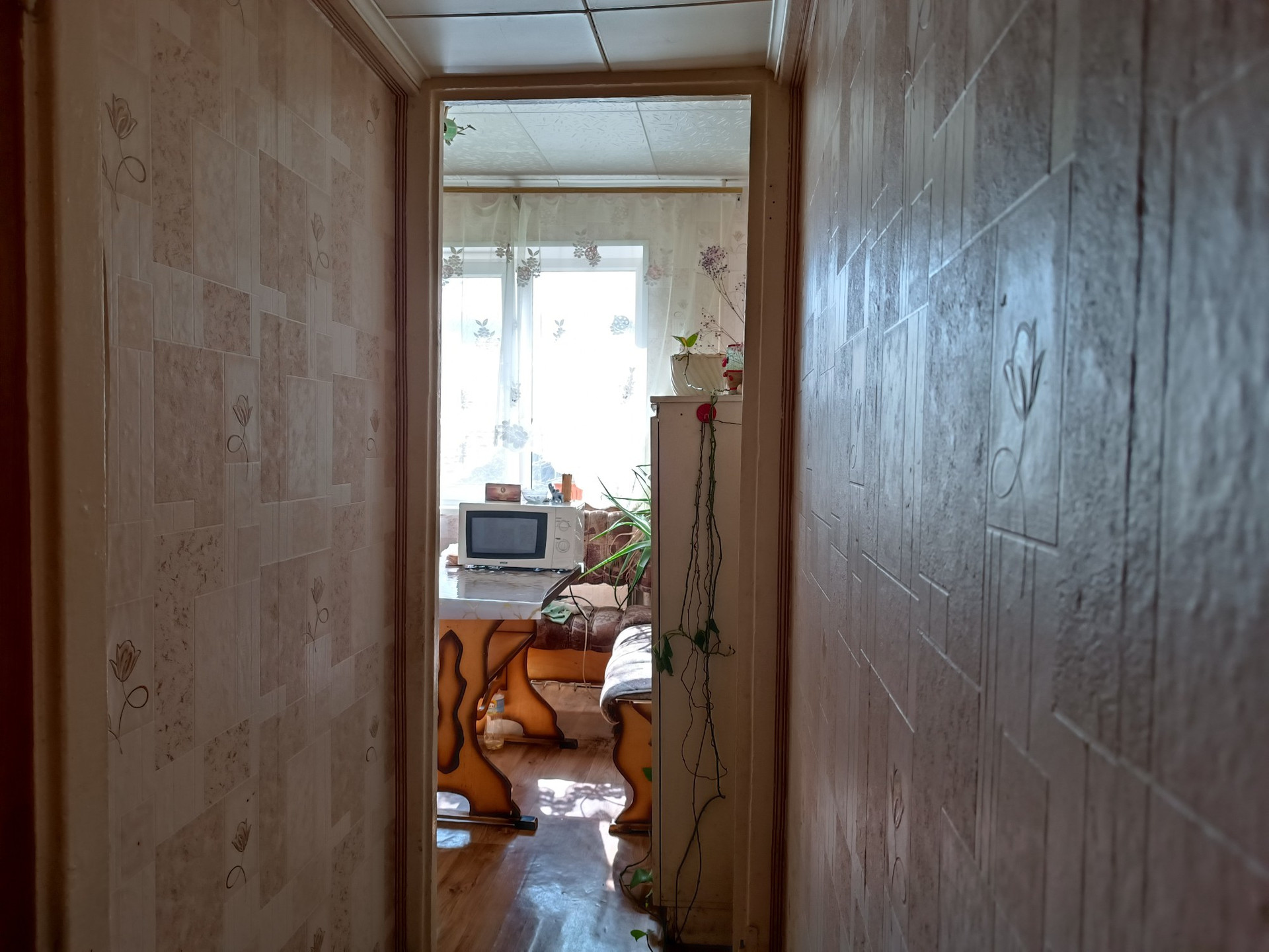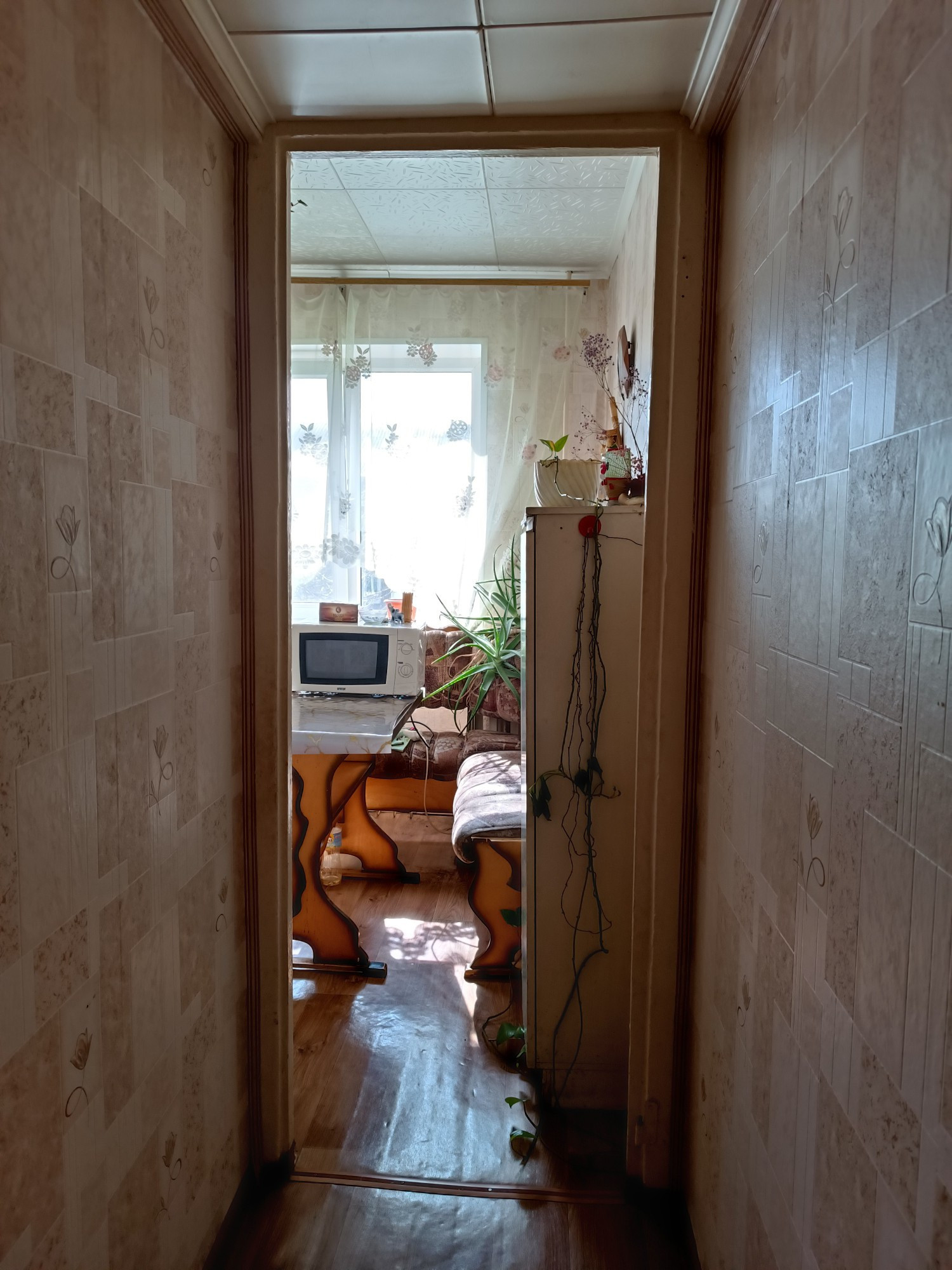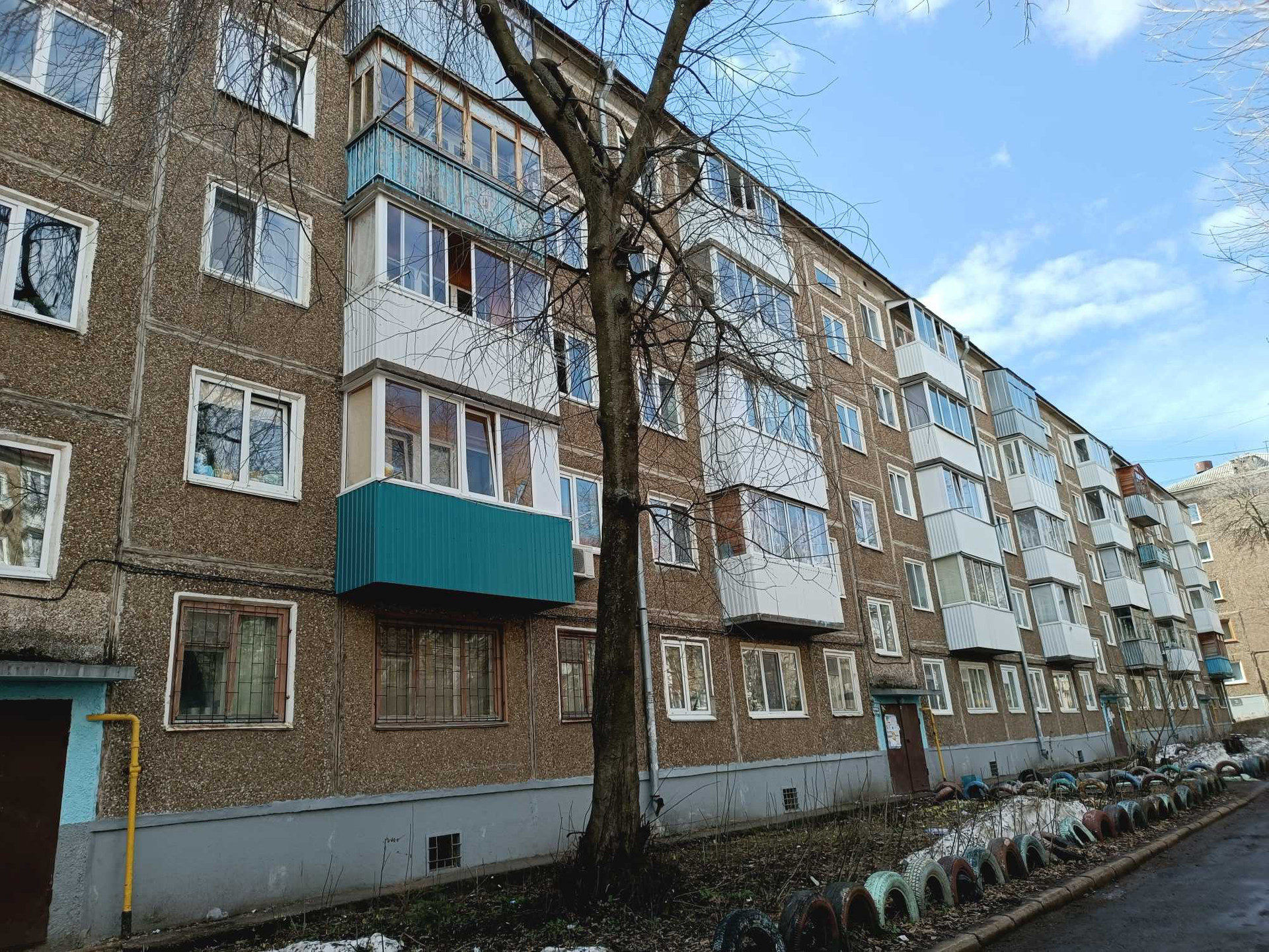 расположена на 4 этаже панельного дома ,но она у нас не угловая , дом 1968 года постройки. Высота потолков 2,5 м и оборудована всем необходимым для жизни.  Балкон 2  м.кв застеклена и утеплена, её можно переоборудовать под кабинет.   Во дворе дома детский сад и школа .Во дворе Очень много зелени. Всегда можно найти место для парковки.