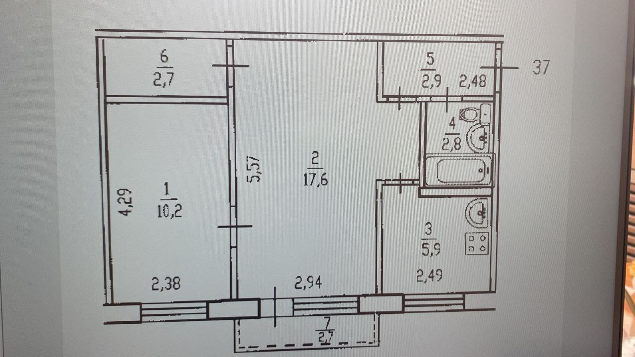 Балкон, лоджия 1 балкон