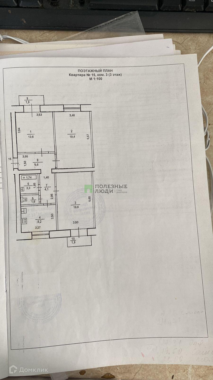 Жилая площадь 52.6 м2
