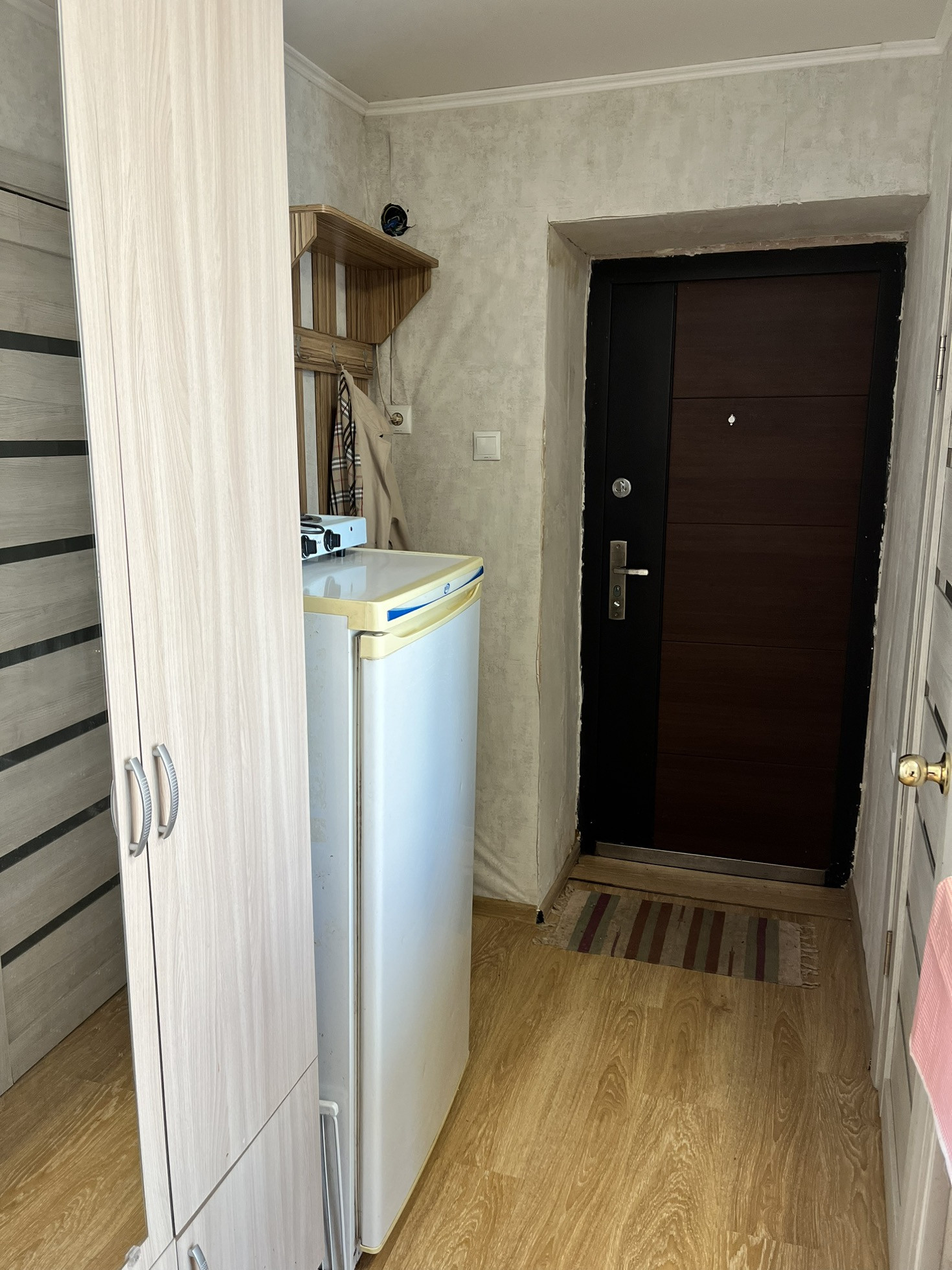 - продается с мебелью: шкаф для одежды, диван, стол, холодильник, стиральная  машина.