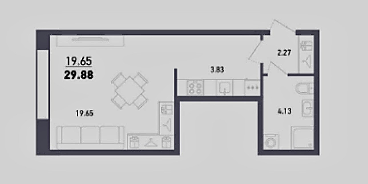 Общая площадь 30.6 м2