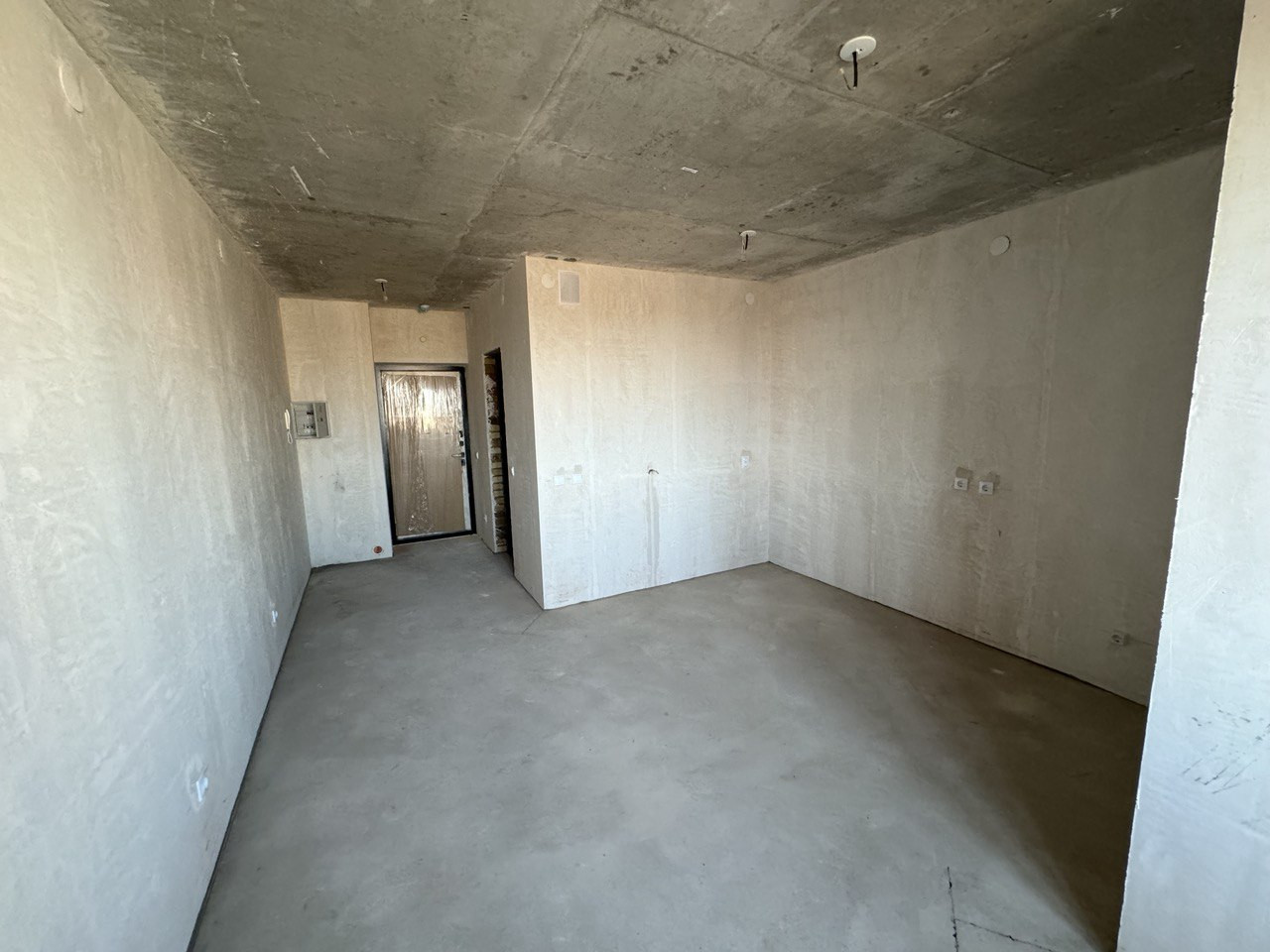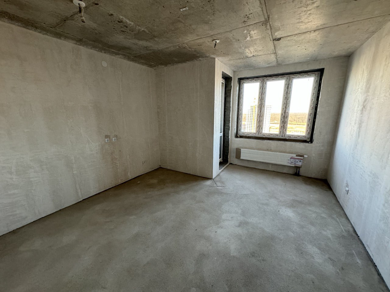 Стены выровнены по маякам, выполнена стяжка пола, двухкамерные стеклопакеты окон
