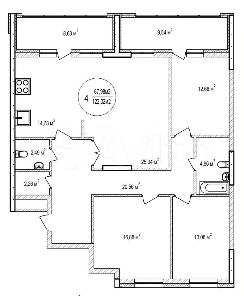 Общая площадь 122 м2