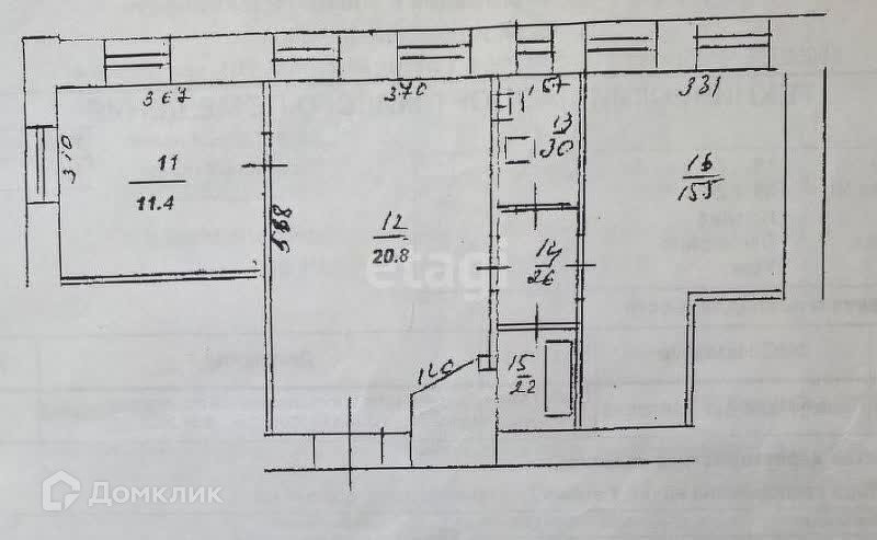 *две жилые комнаты - 15,5 кв.м. и 11,4 кв.м.