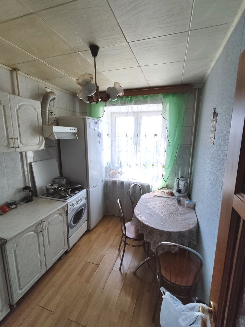 Ремонт в квартире делалась давно. На фотографиях видно. На полу ламинат. Установлены пластиковые окна. Санузел соединенный.