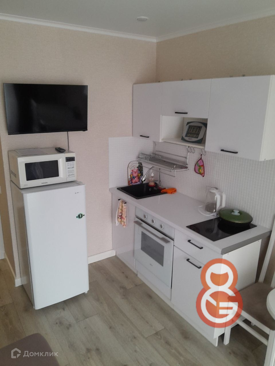 Кухня оборудована мебелью, электрическая плита, духовка, холодильник, гарнитур -все остается .