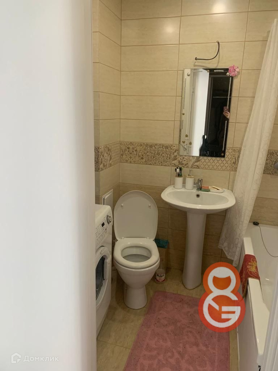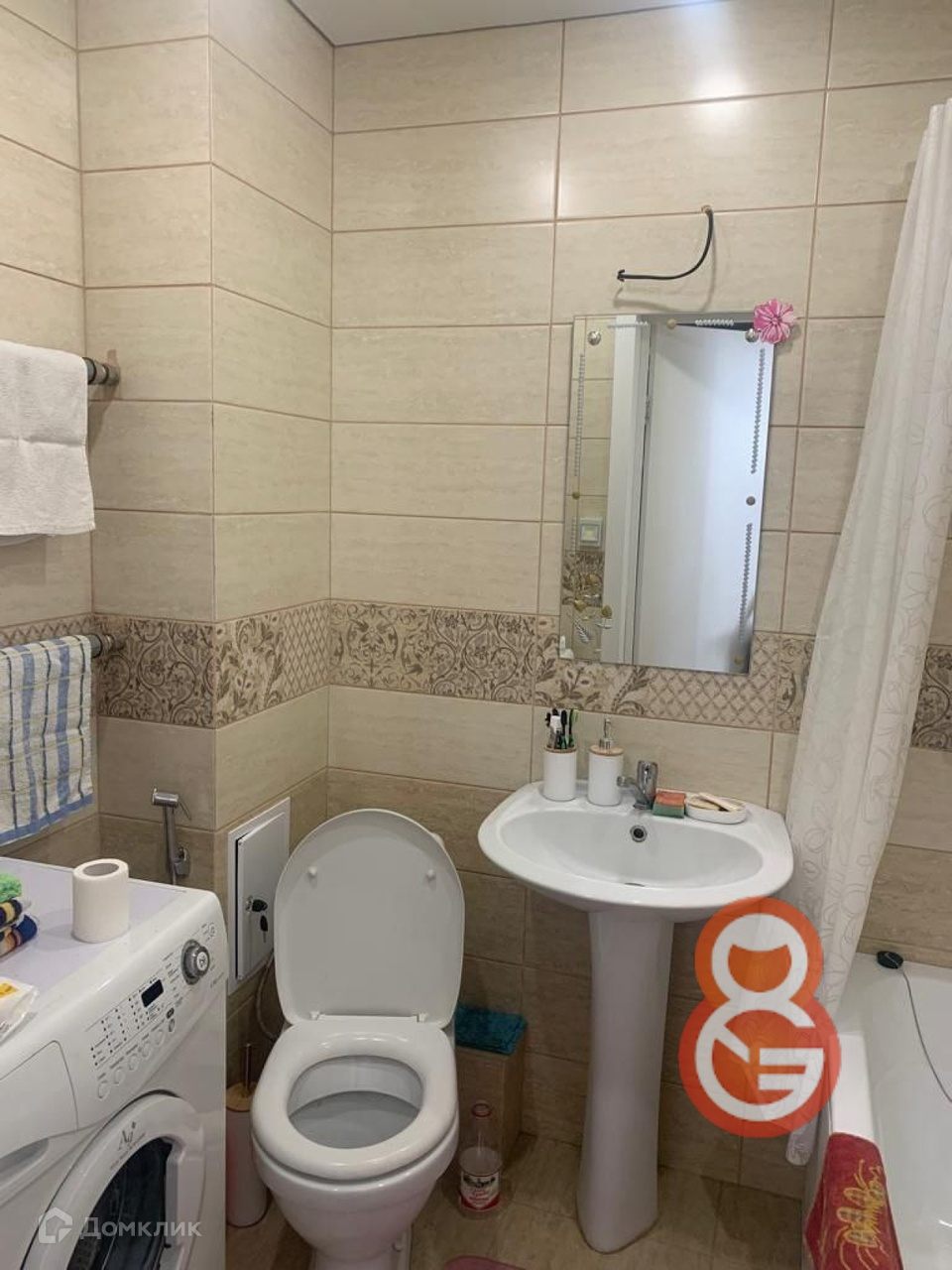 В ванной комнате  плитка, остается стиральная машина.