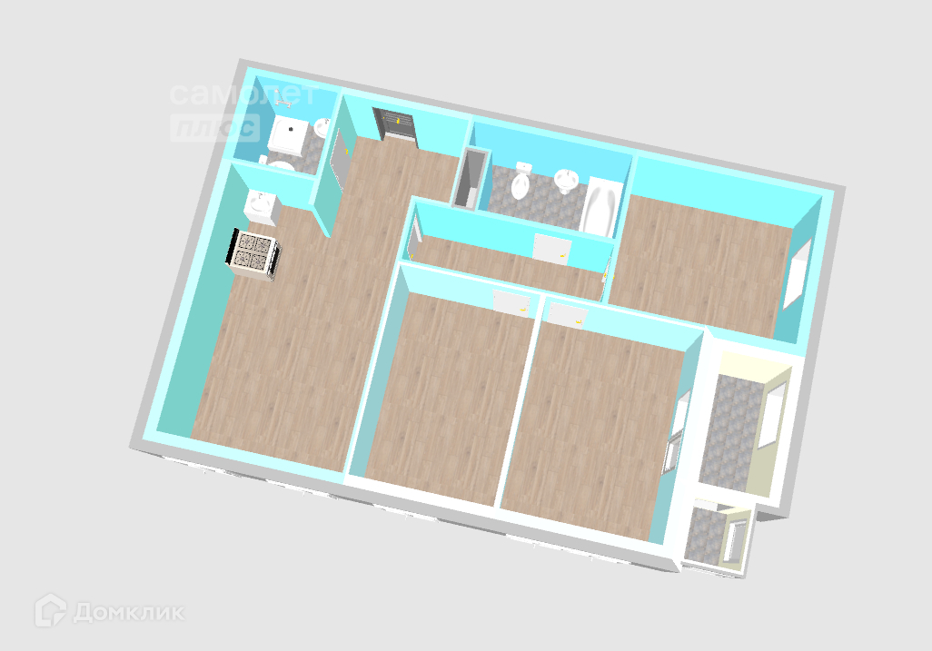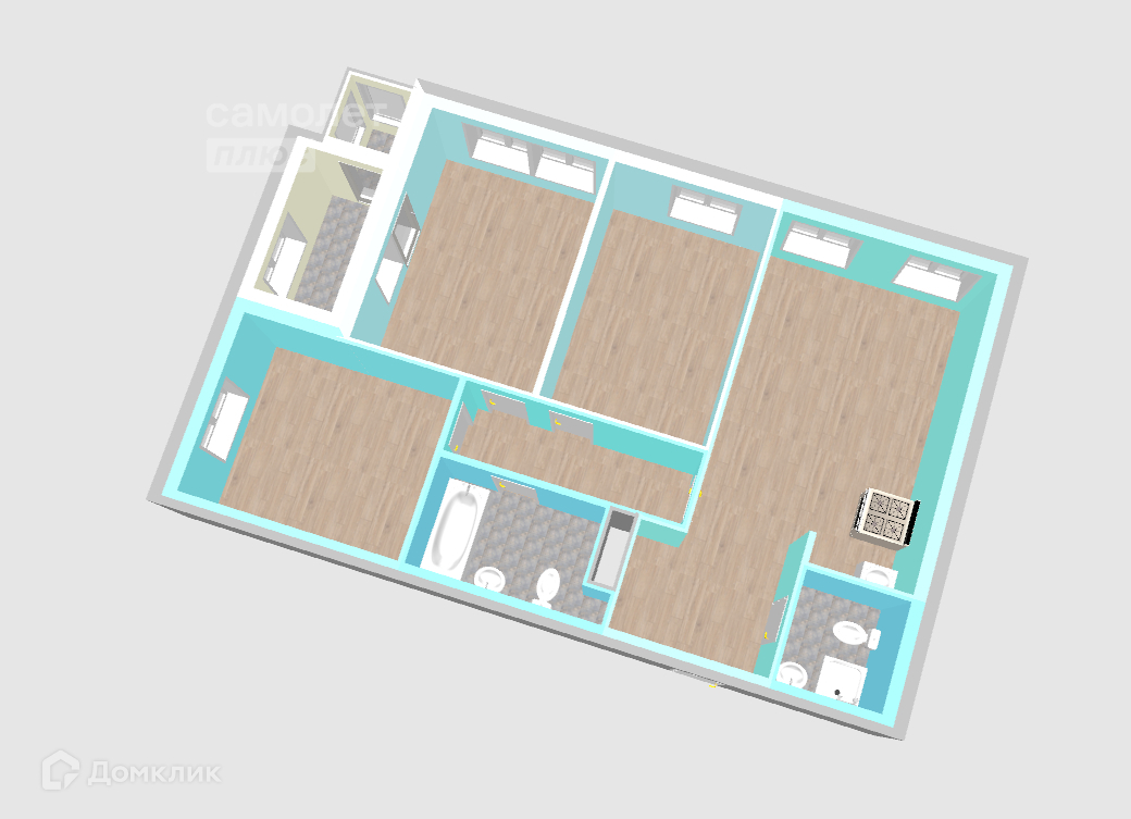 Общая площадь - 88,89 кв.м. Большая кухня-гостиная, 2 санузла, гардеробная на входе, 3 полноценные просторные комнаты. Высота потолков 2,8м. На этаже 4 квартиры.