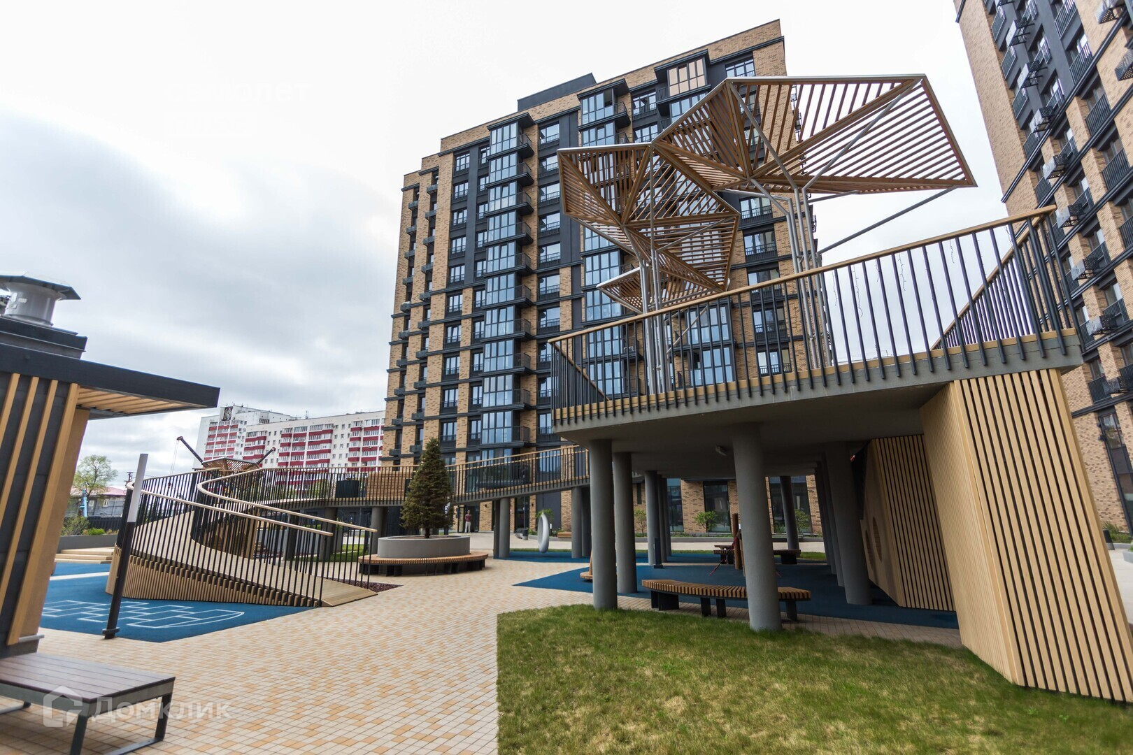 Закрытая охраняемая территория, видеонаблюдение по периметру 24/7, дизайнерские парадные, бесшумные скоростные лифты премиум класса, Silver с дезинфекцией, двухуровневый Play-hub для разных возрастов, вход в подъезд по Face ID, подземный двухуровневый паркинг, предусмотрена охранно-пожарная сигнализация и система дымоудаления. Архитектурная подсветка фасада по итальянской технологии. Благоустроенная придомовая территория (зоны отдыха, детские, спортивные площадки). Двор без машин.