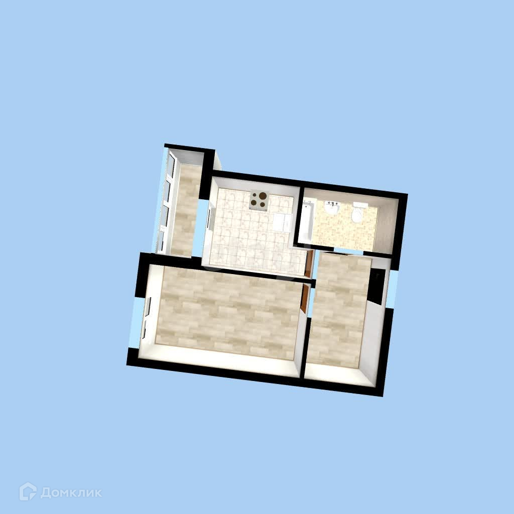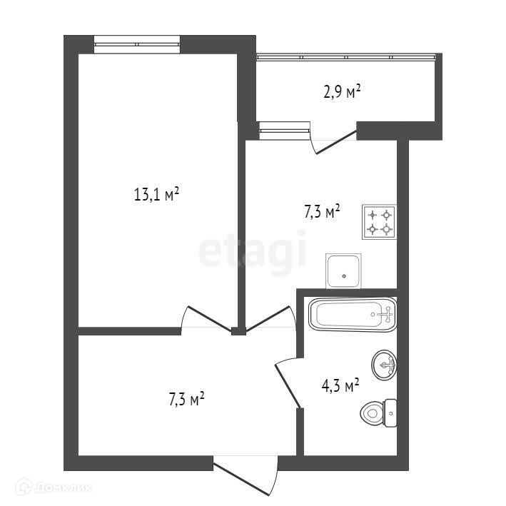 - общая площадь 33,5 кв.м., жилая 13,1 кв.м., кухня 7,3 кв.м., застекленная лоджия, окна во двор;