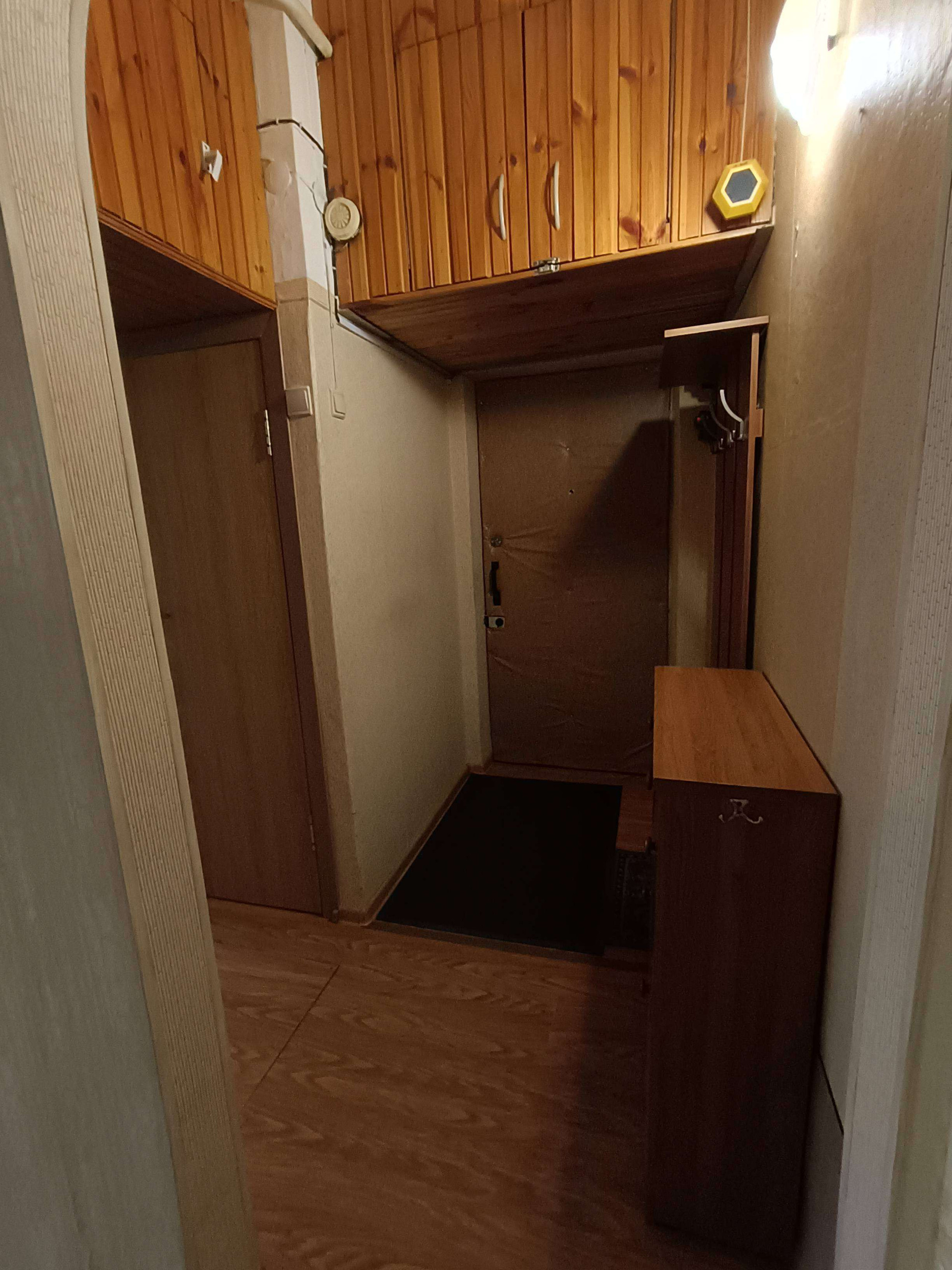 В квартире остаётся угловой шкаф, навесные шкафы, кухня.