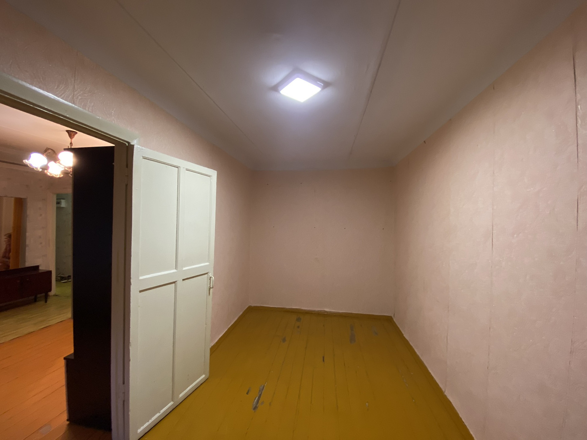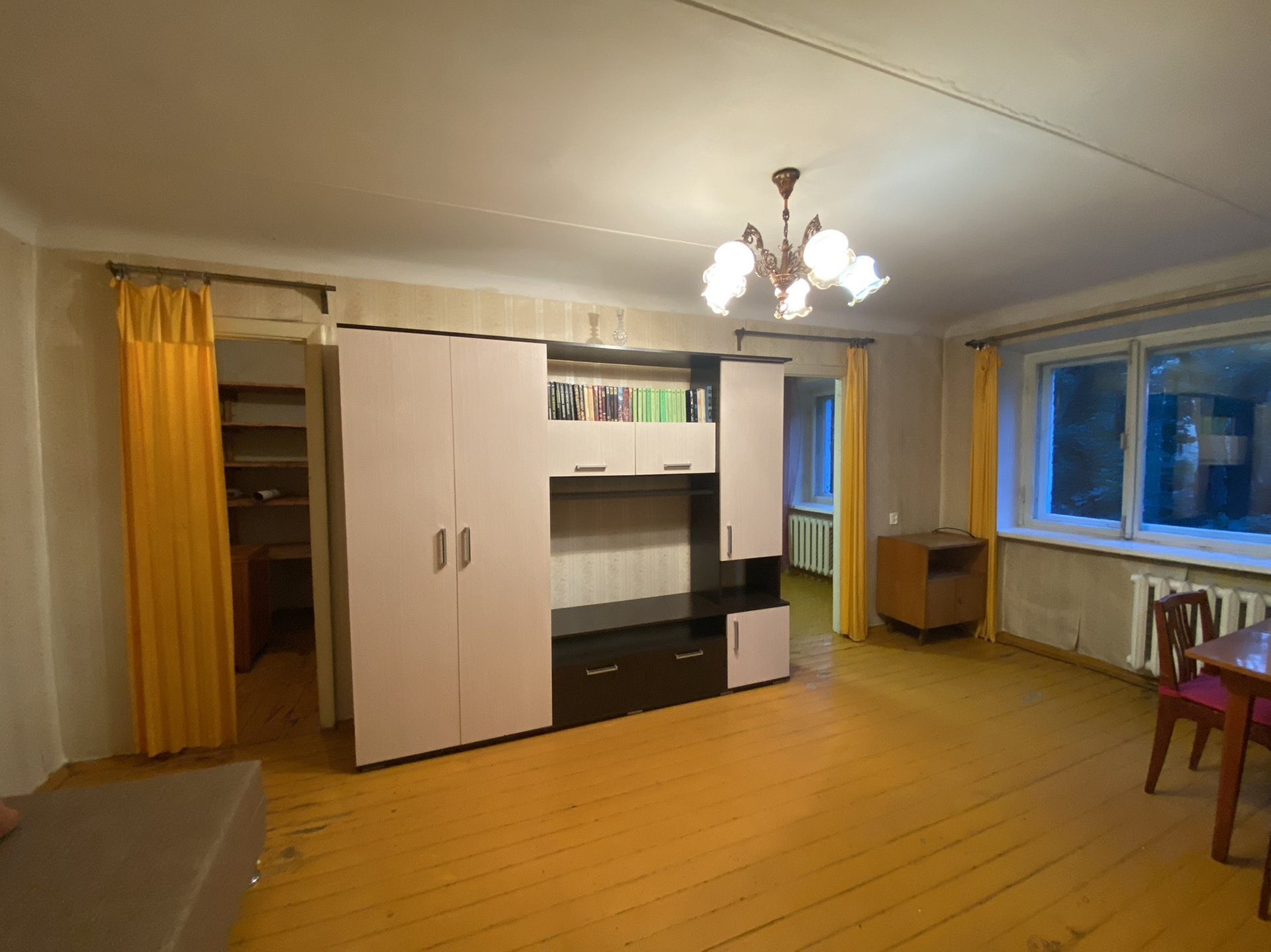 Зал-18 м2, спальня-13 м2 (комнаты смежные, можно сделать изолированные ), кухня-6 м2, санузел совмещен-5 м2. Имеется кладовая, есть возможность сделать хорошую гардеробную.