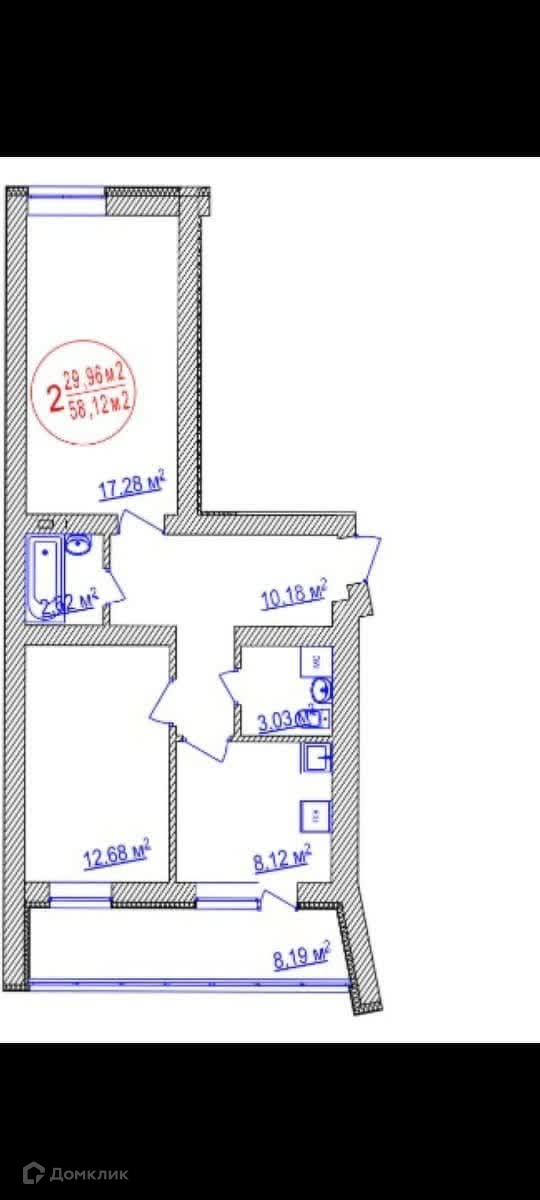 Общая площадь 58.12 м2