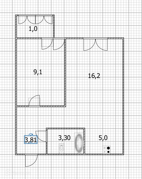 Жилая площадь 16.02 м2