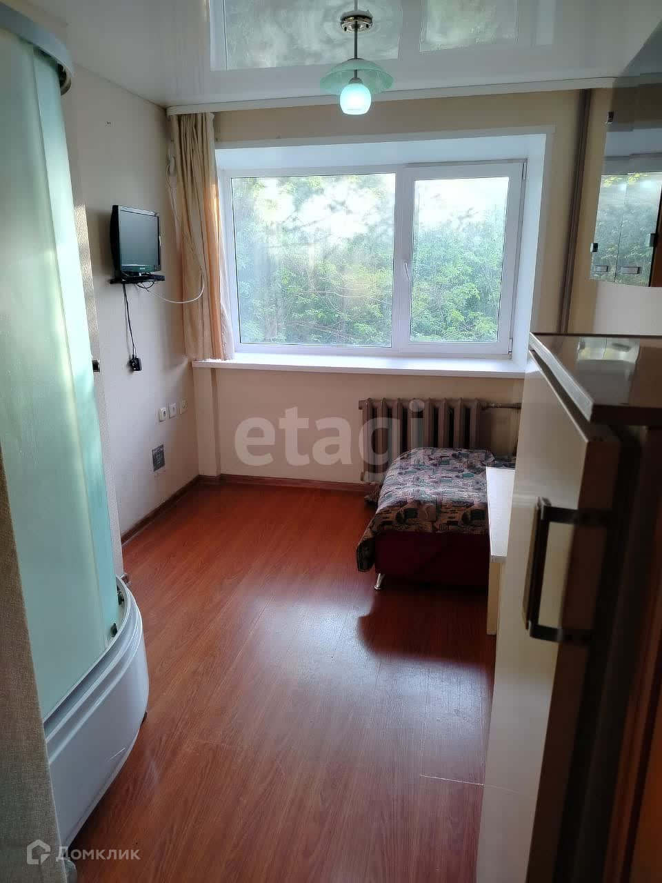 В комнате остается вся мебель и техника.
