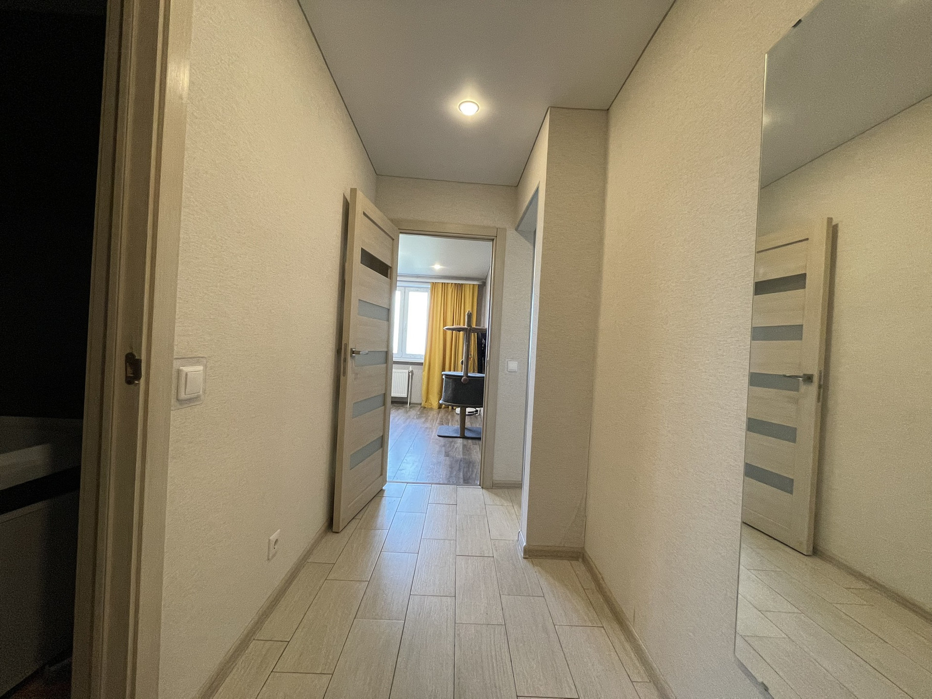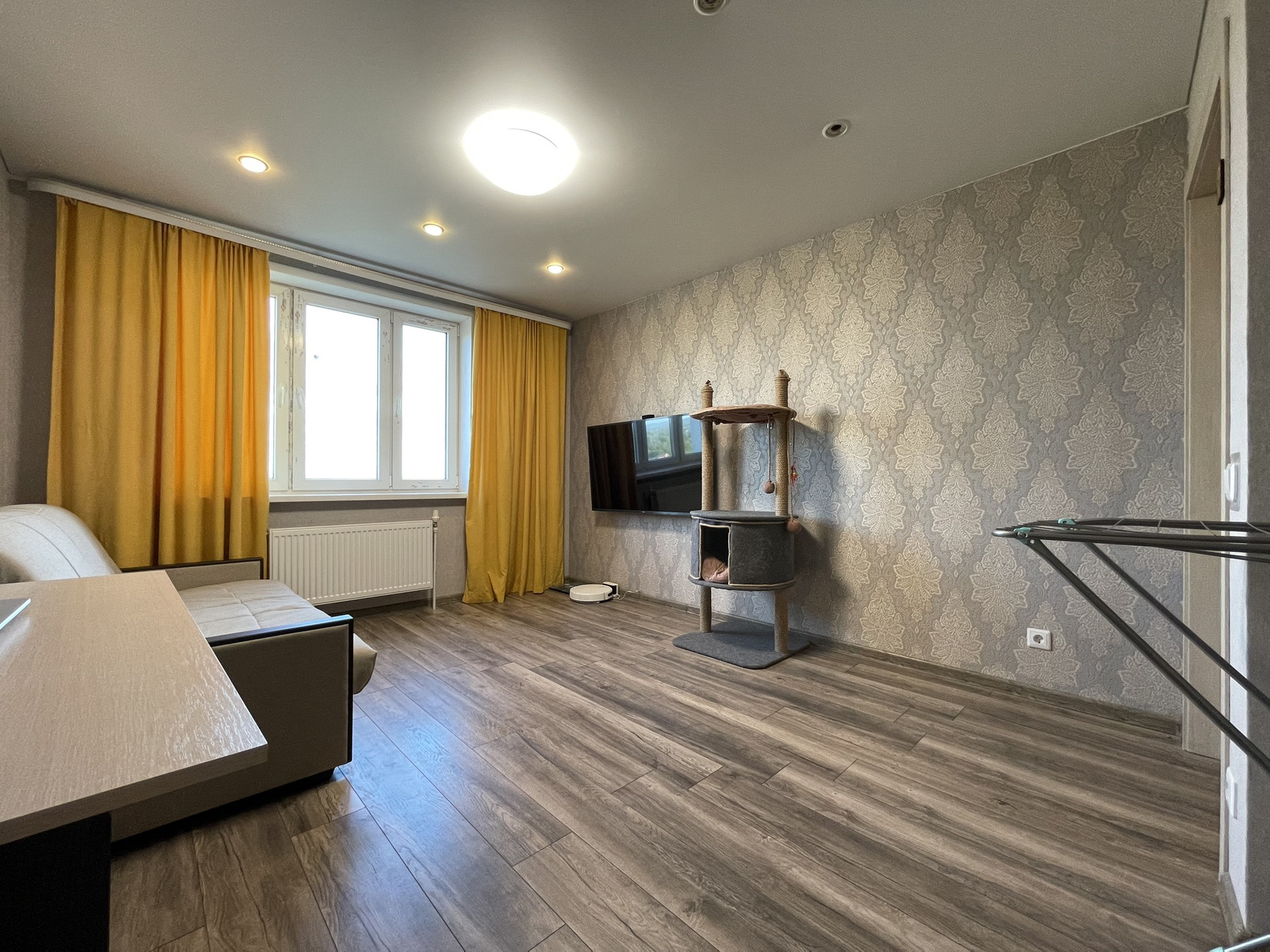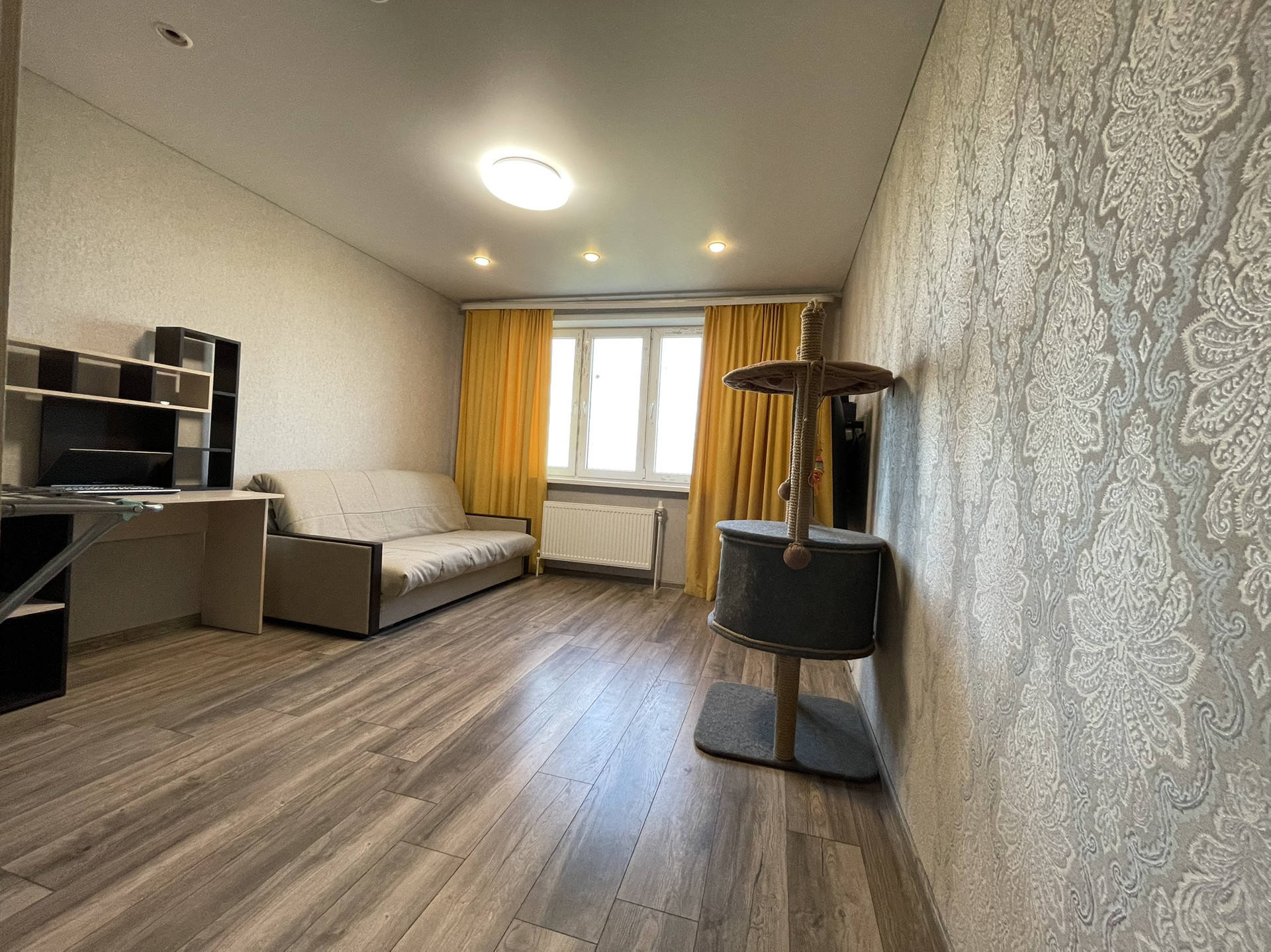 В квартире выполнена качественная отделка. На стенах обои, на полу ламинат, матовый натяжной потолок; в санузле хорошая плитка с теплым полом, качественные двери. Хорошие двойные стеклопакеты (отличная тепло- и шумоизоляция), металлические радиаторы. Система вентилируемых фасадов хорошо сохраняет тепло (фасад сохранит первозданный вид минимум 50 лет).