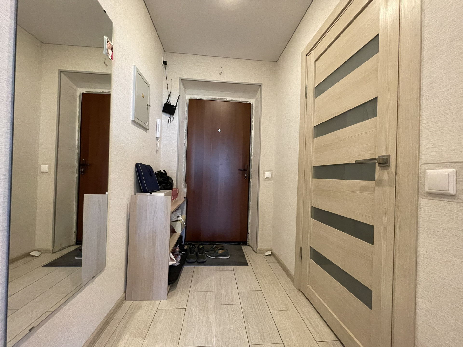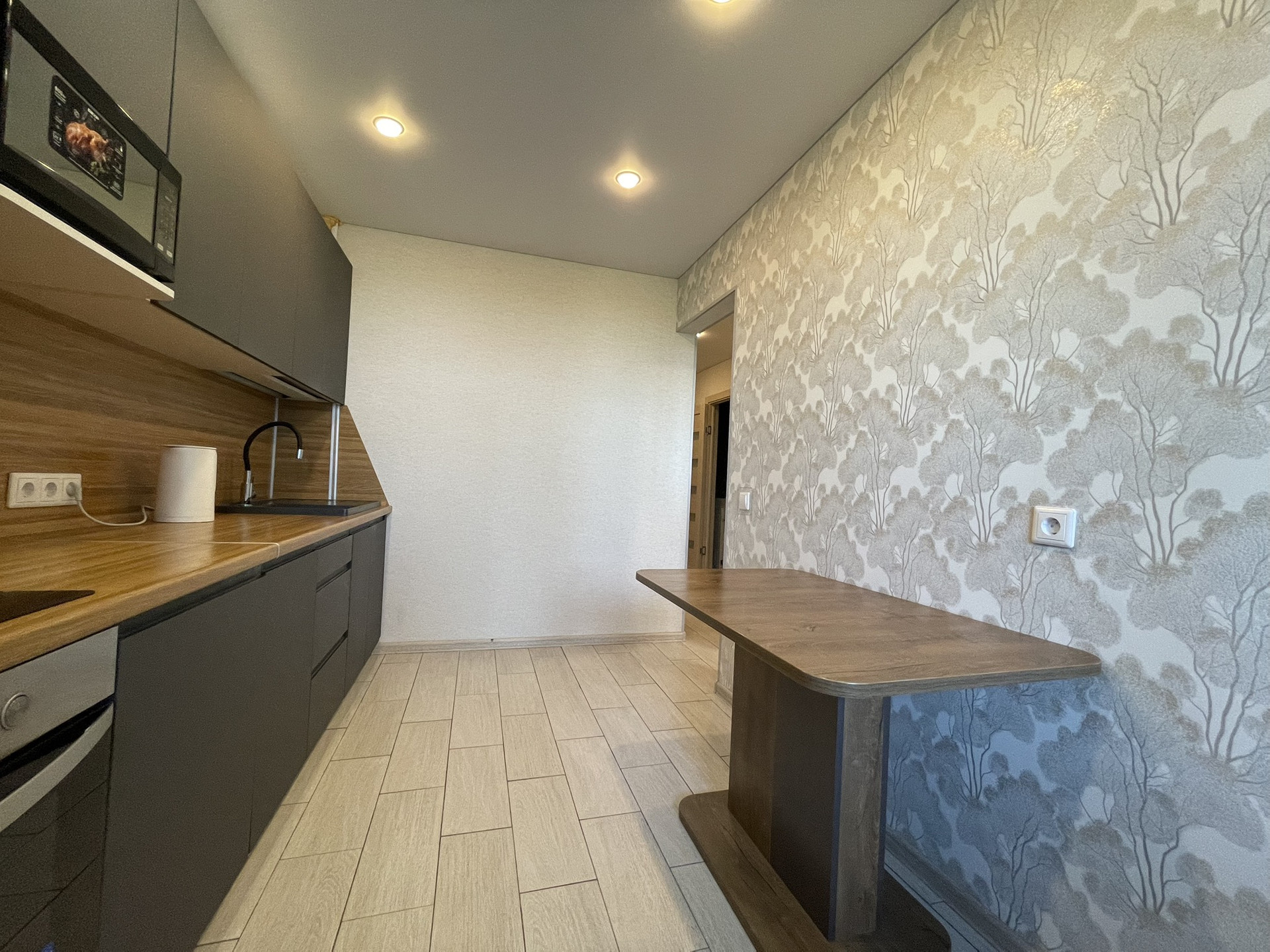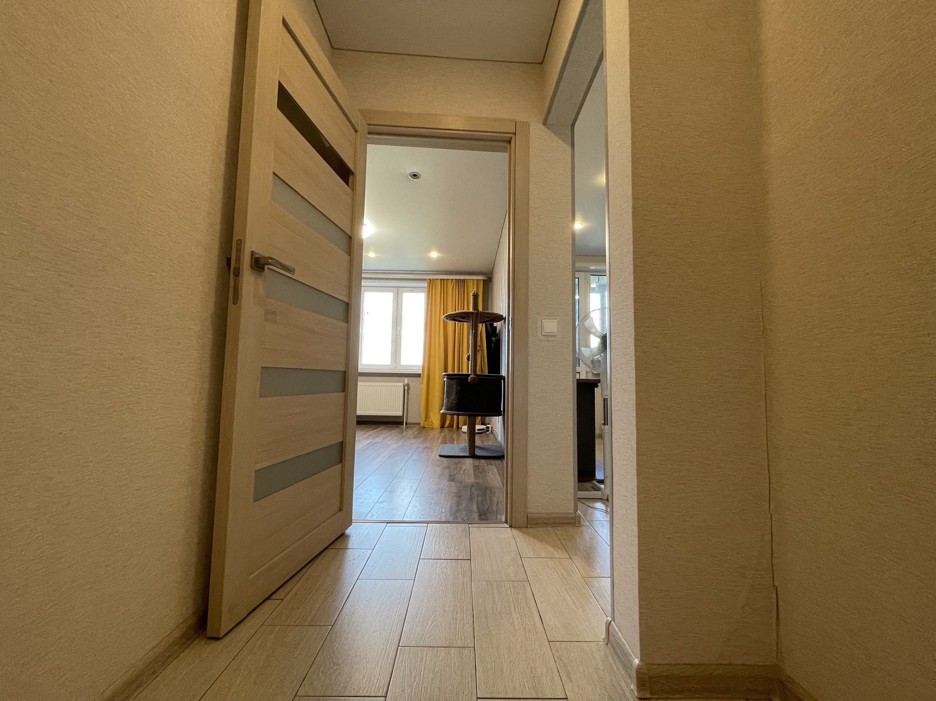 В квартире выполнена качественная отделка. На стенах обои, на полу ламинат, матовый натяжной потолок; в санузле хорошая плитка с теплым полом, качественные двери. Хорошие двойные стеклопакеты (отличная тепло- и шумоизоляция), металлические радиаторы. Система вентилируемых фасадов хорошо сохраняет тепло (фасад сохранит первозданный вид минимум 50 лет).