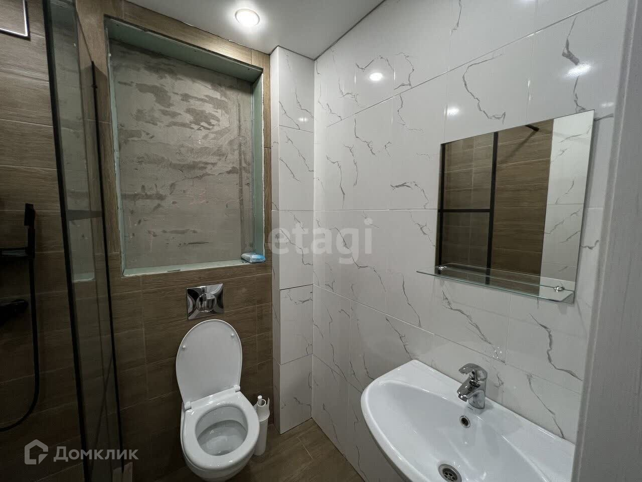 B санузлe выложeнa кpаcивая плитка.