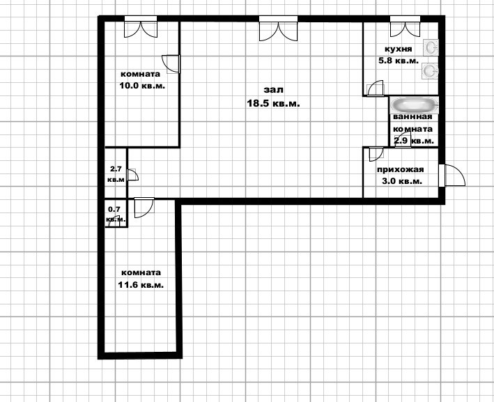 Комнаты - 18.5+11.6+10