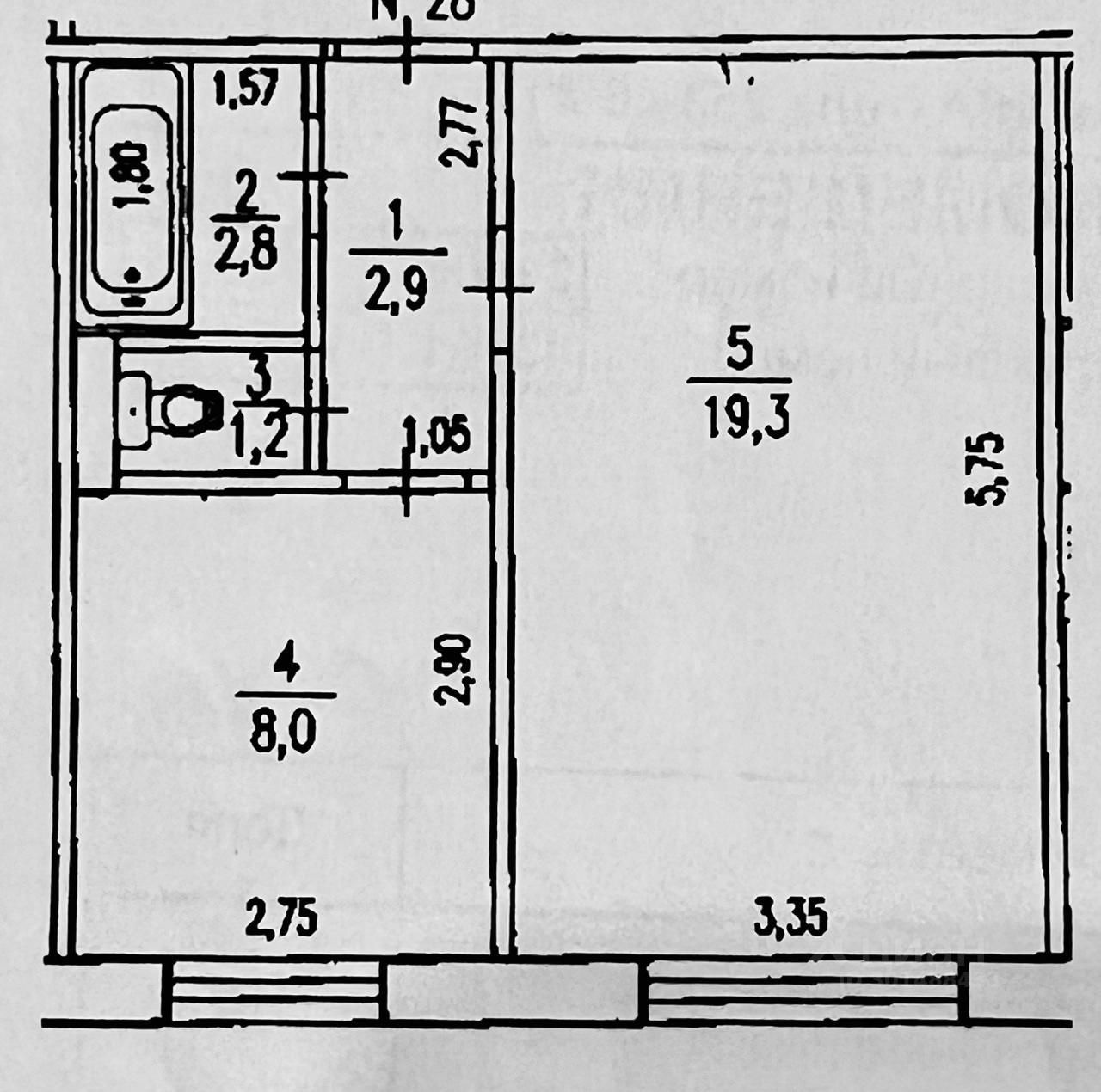 Общая площадь 34.2 м2