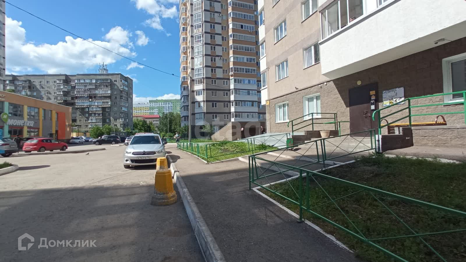 В доме есть подземный паркинг, консьерж сервис, лифты грузовые и пассажирские, по периметру двора видеонаблюдение. Большая территория двора вмещает в себя комплекс из трех отдельных домов, на которой расположена большая детская площадка, магазин Монетка и Хозмаг.