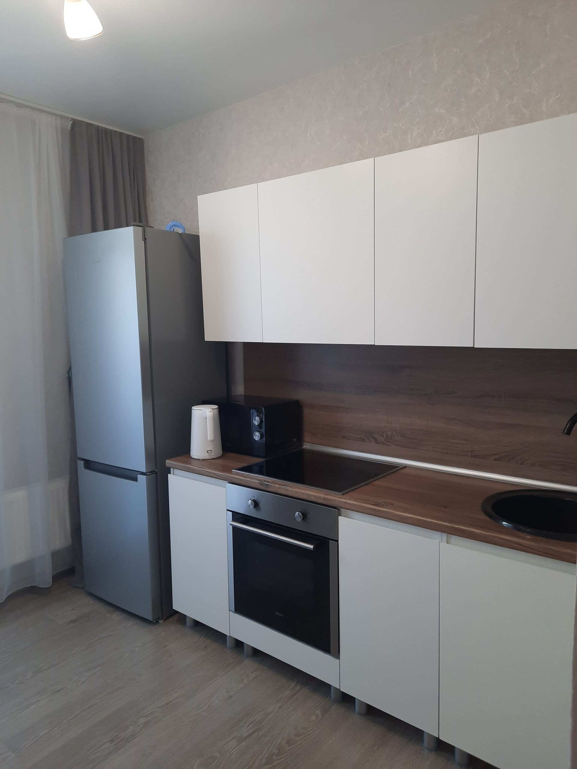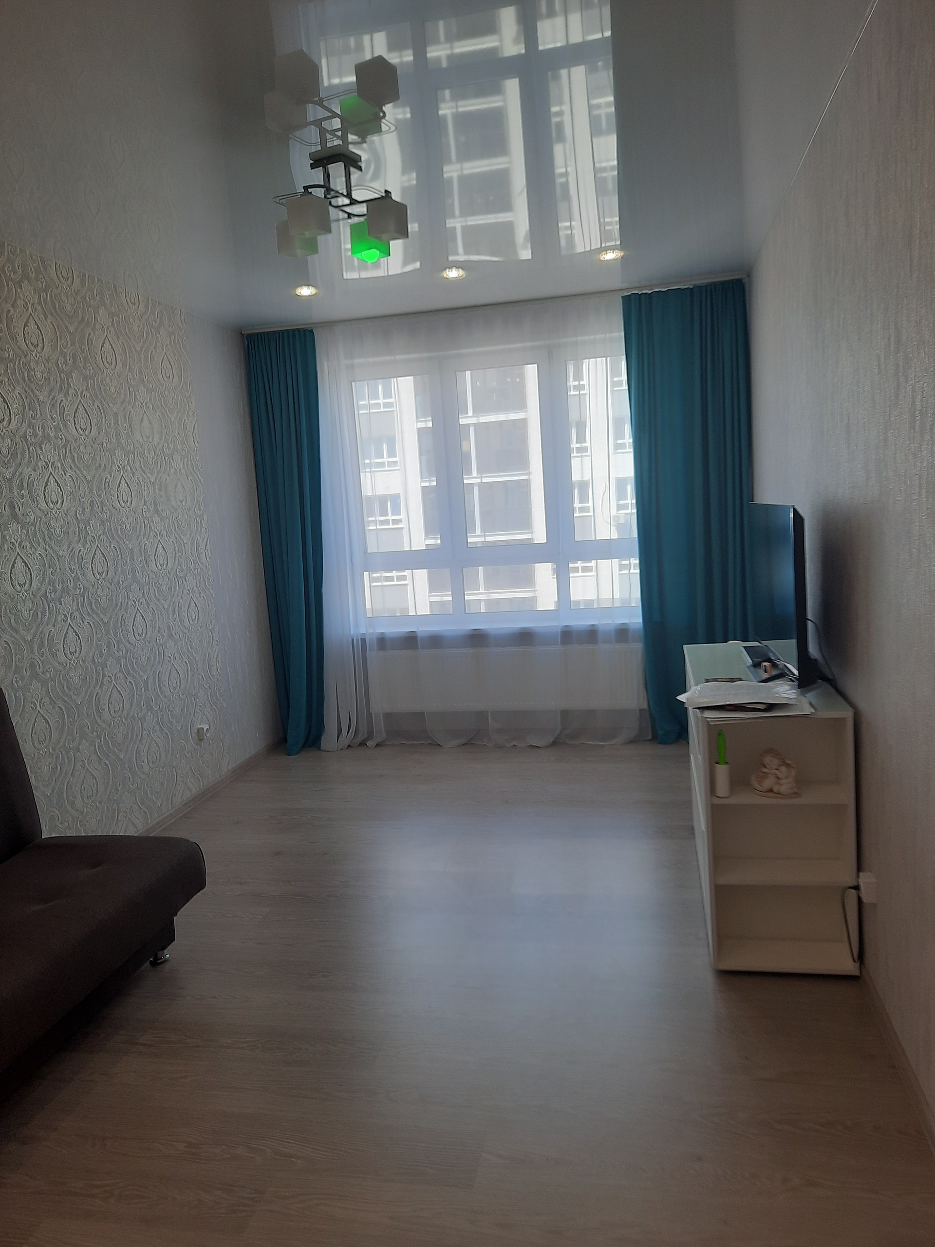 В квартире сделан качественный ремонт ,пол ламинат , потолки натяжные , санузел полностью в кафеле. В квартире остаётся шкаф и встроенная кухонная техника .