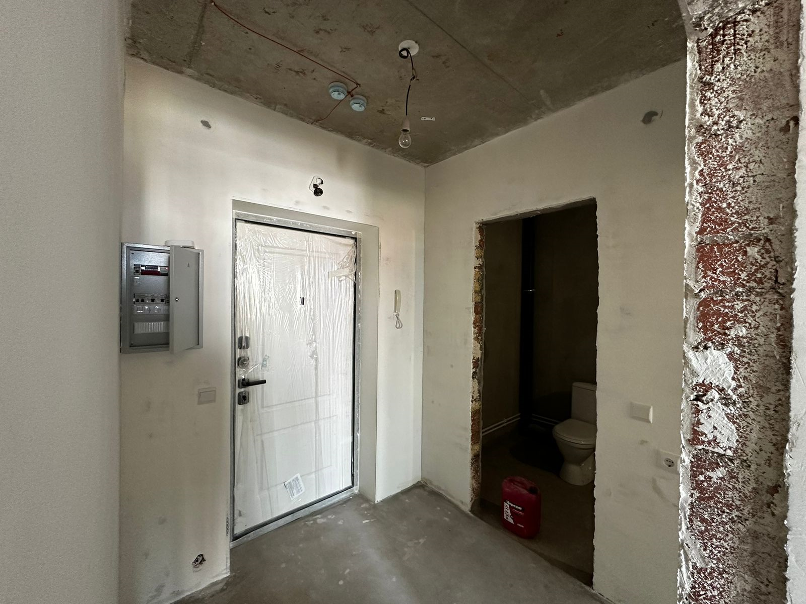Данная квартира в предчистовой отделке, уже проделанная финишная работа, подключен унитаз.