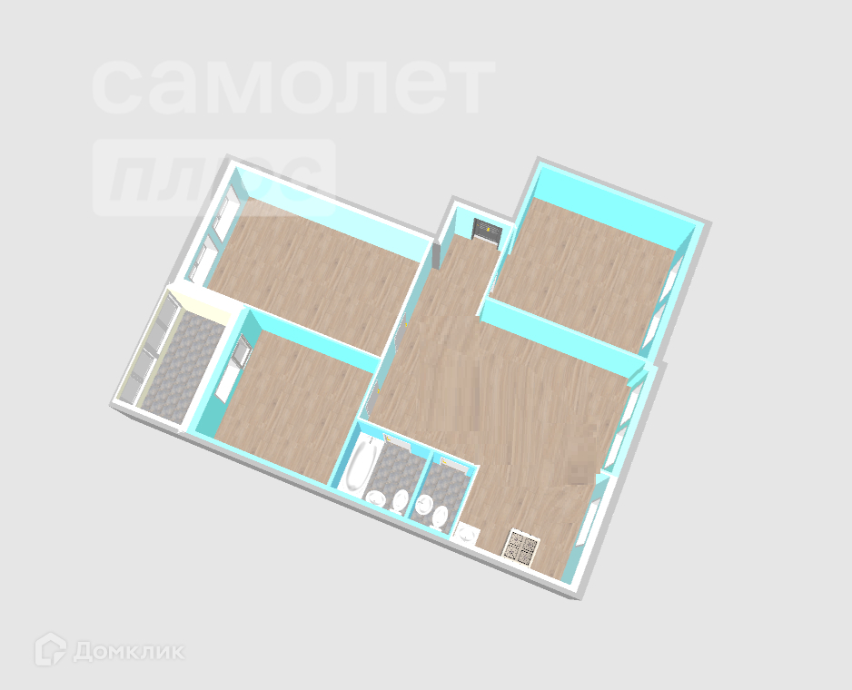 - Три спальни 19,4м2, 21,6м2, 13,6м2