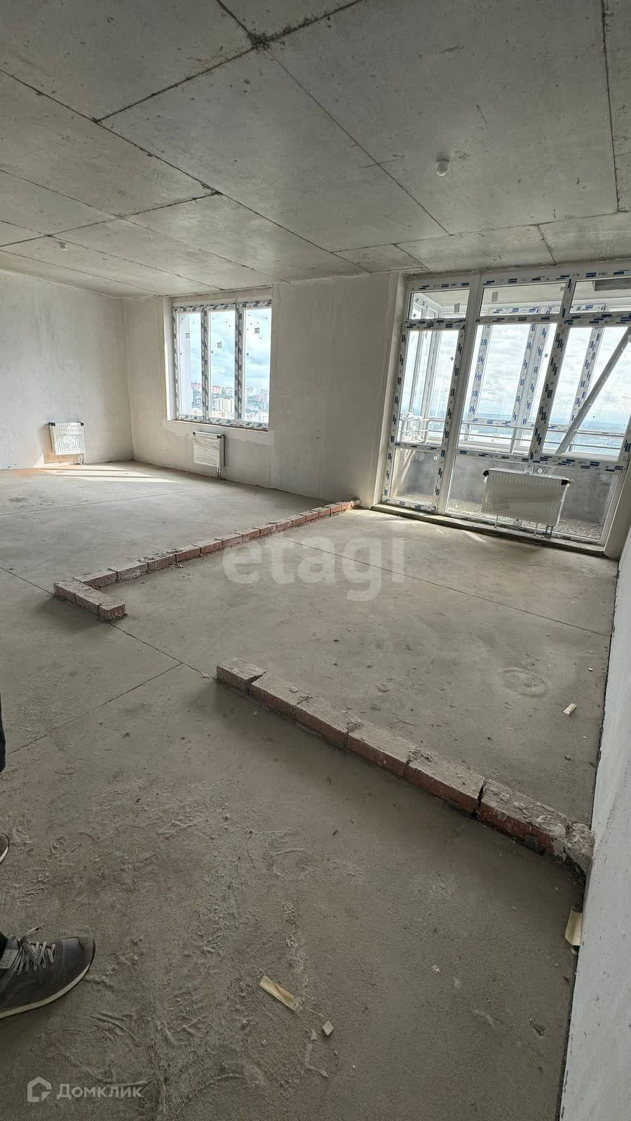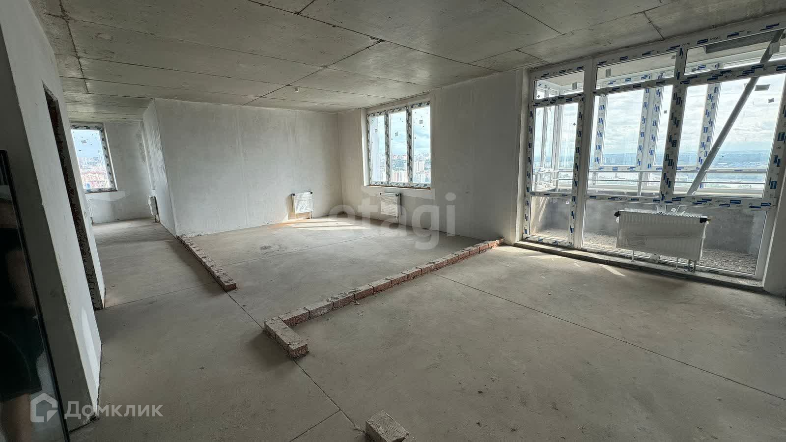 В квартире предчистовая отделка: установлены пластиковые окна, выровнены стены, стяжка пола, установлены радиаторы отопления с регулировкой, лучевая разводка по полу в квартире теплые полы.