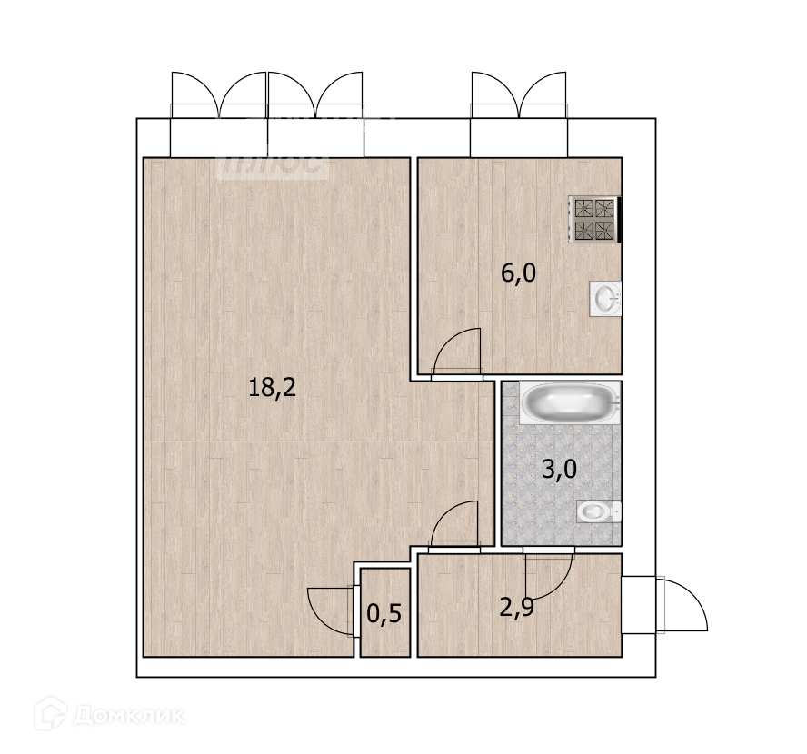 Общая площадь 30.6 м2