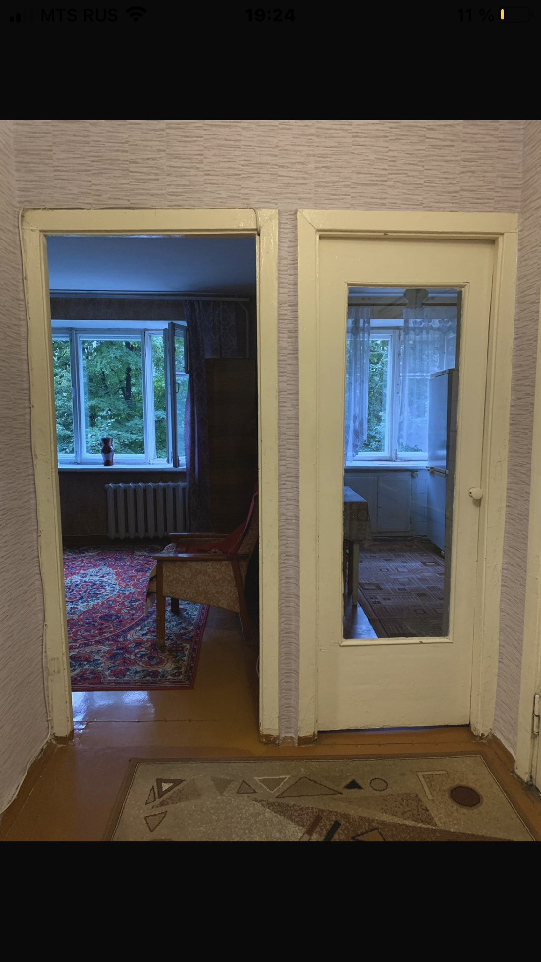 Окна на улицу , но закрывают массивные раскидистые плотные кроны деревьев, которые находятся достаточно далеко от дороги.