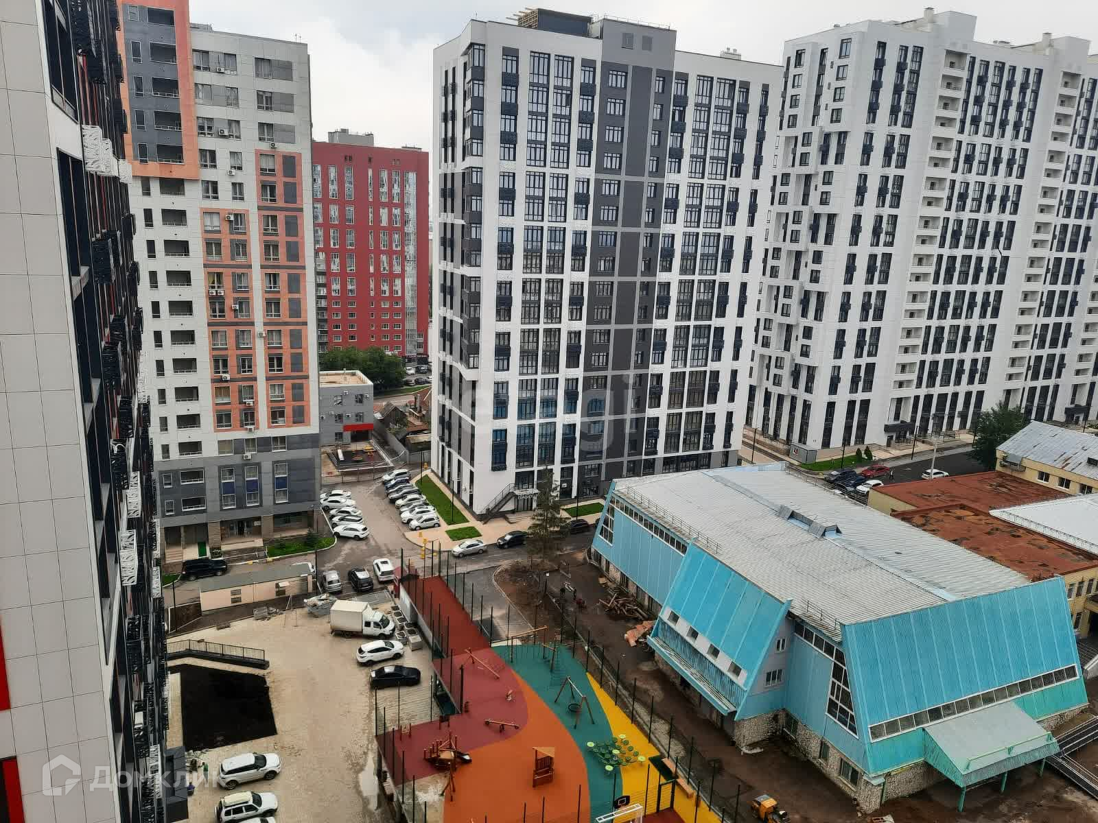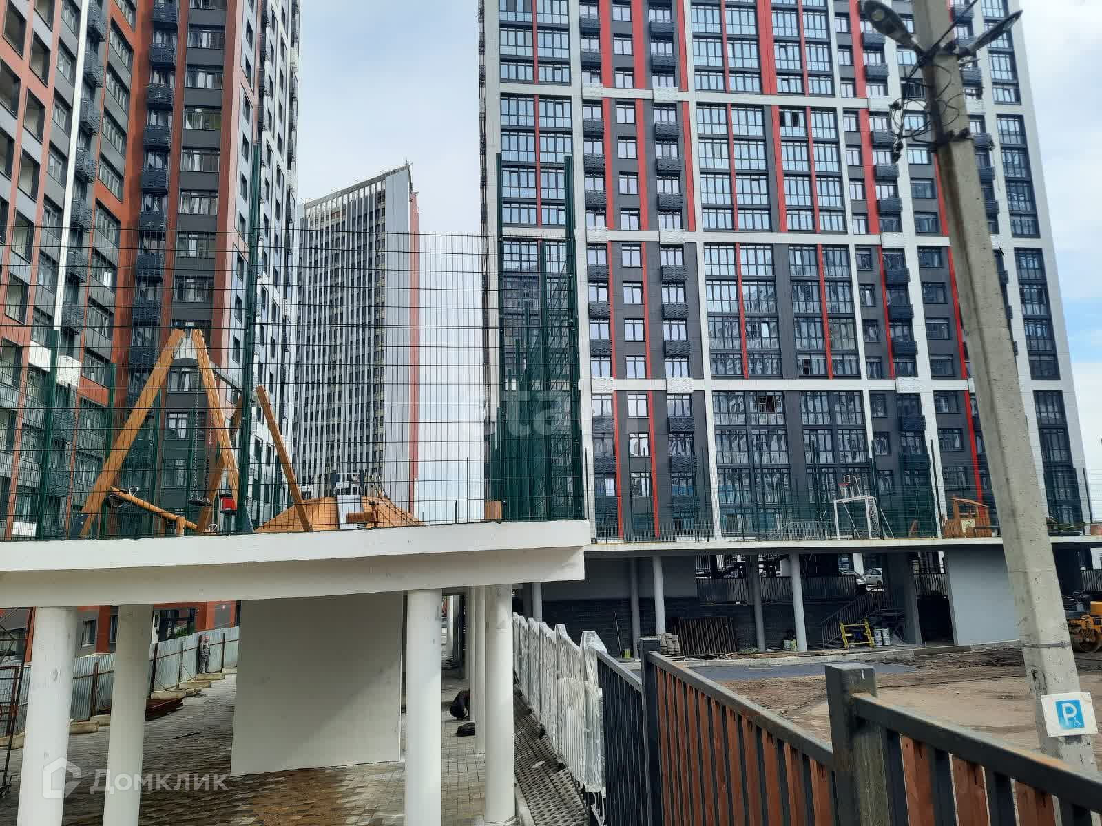 Детская и спортивная площадка во дворе подняты на уровень.