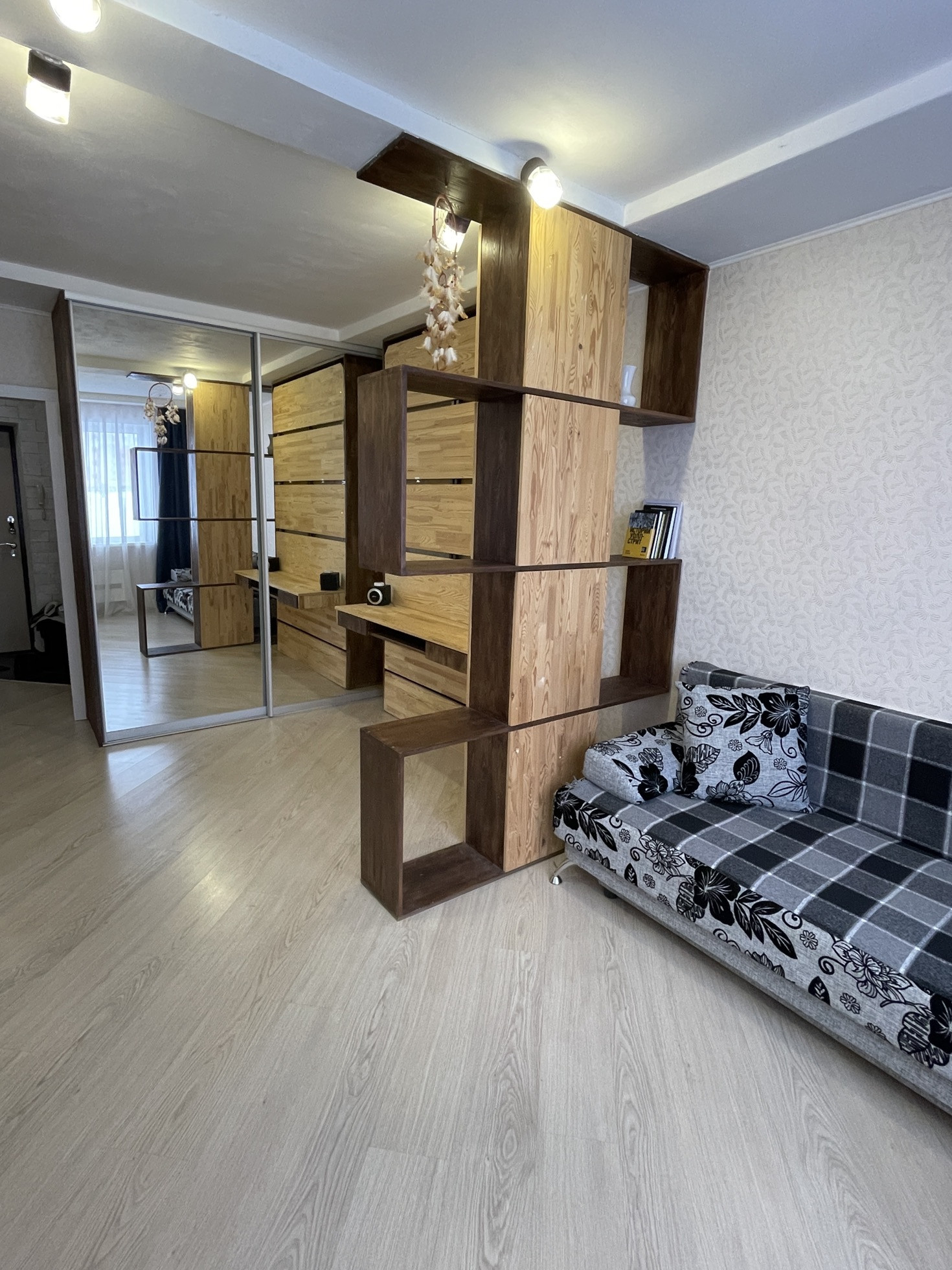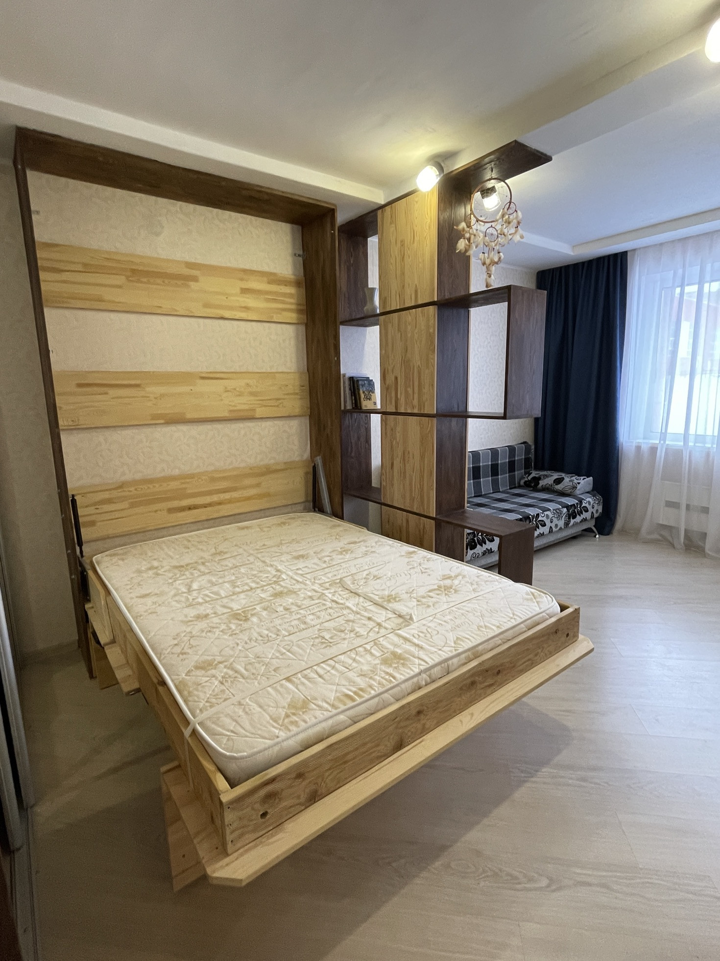 Вся мебель остается как есть (стол, стулья, шкафы, вертикальная кровать, диван, холодильник, кондиционер, машинка автомат) остается привезти тапочки и жить))