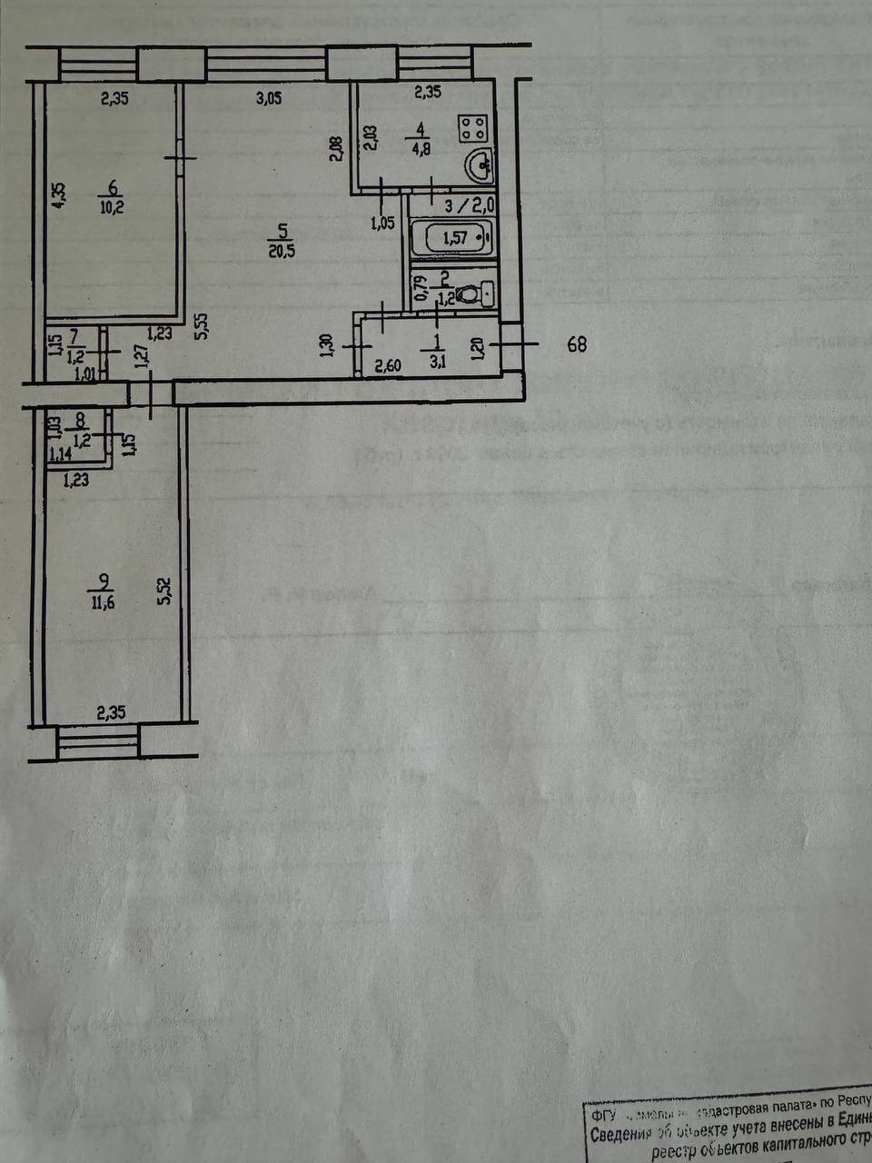 Продается 3 комнатная квартира общей площади 55.8.
