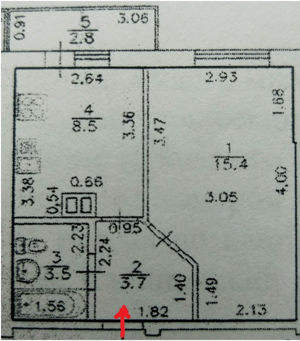 Жилая площадь 15.4 м2