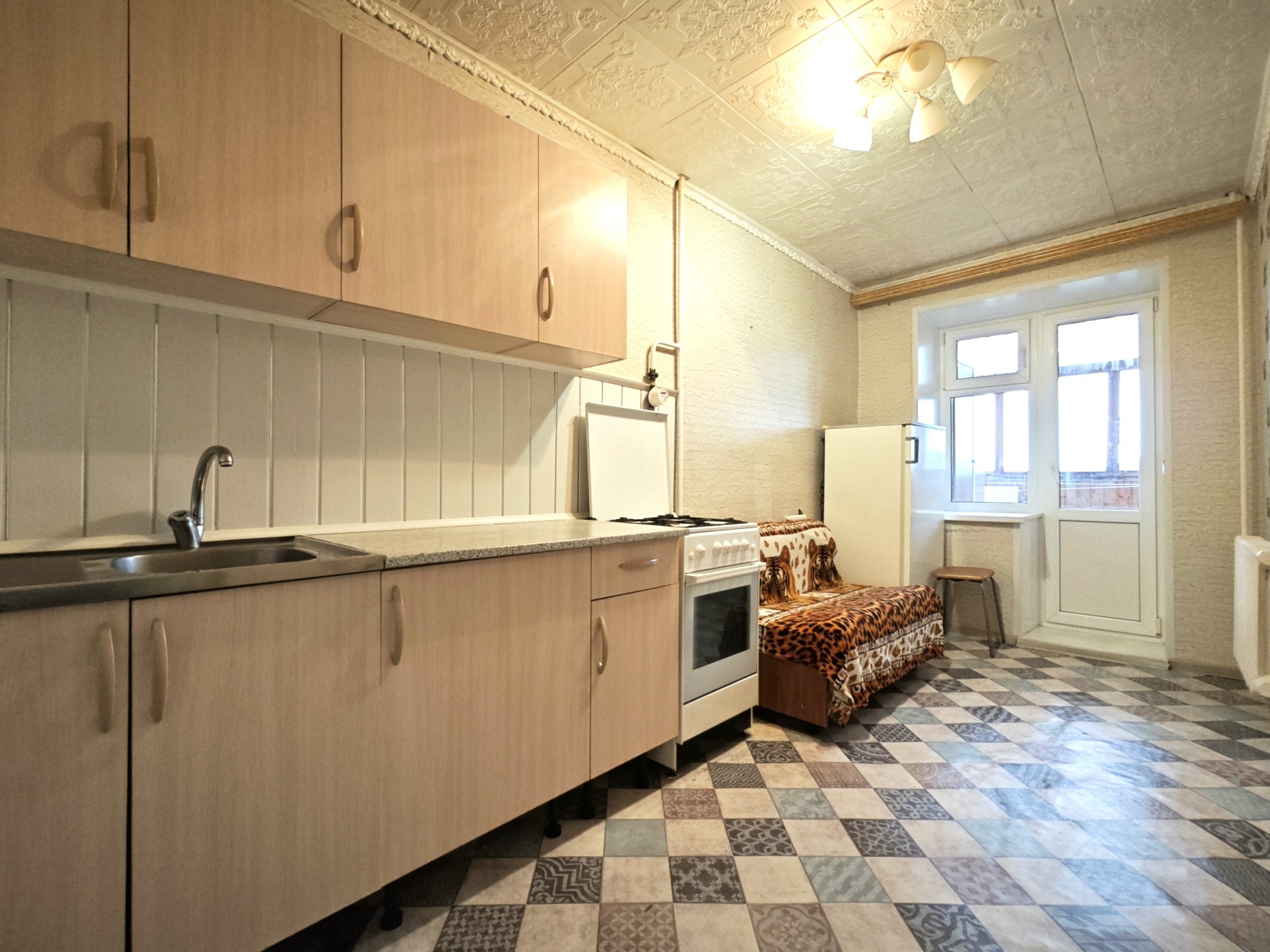 В квартире косметический ремонт – в санузле плитка, на полу линолеум, натяжной потолок в гостиной, пластиковые окна, балкон застеклен и обшит. Имеется просторная кладовая-гардеробная!