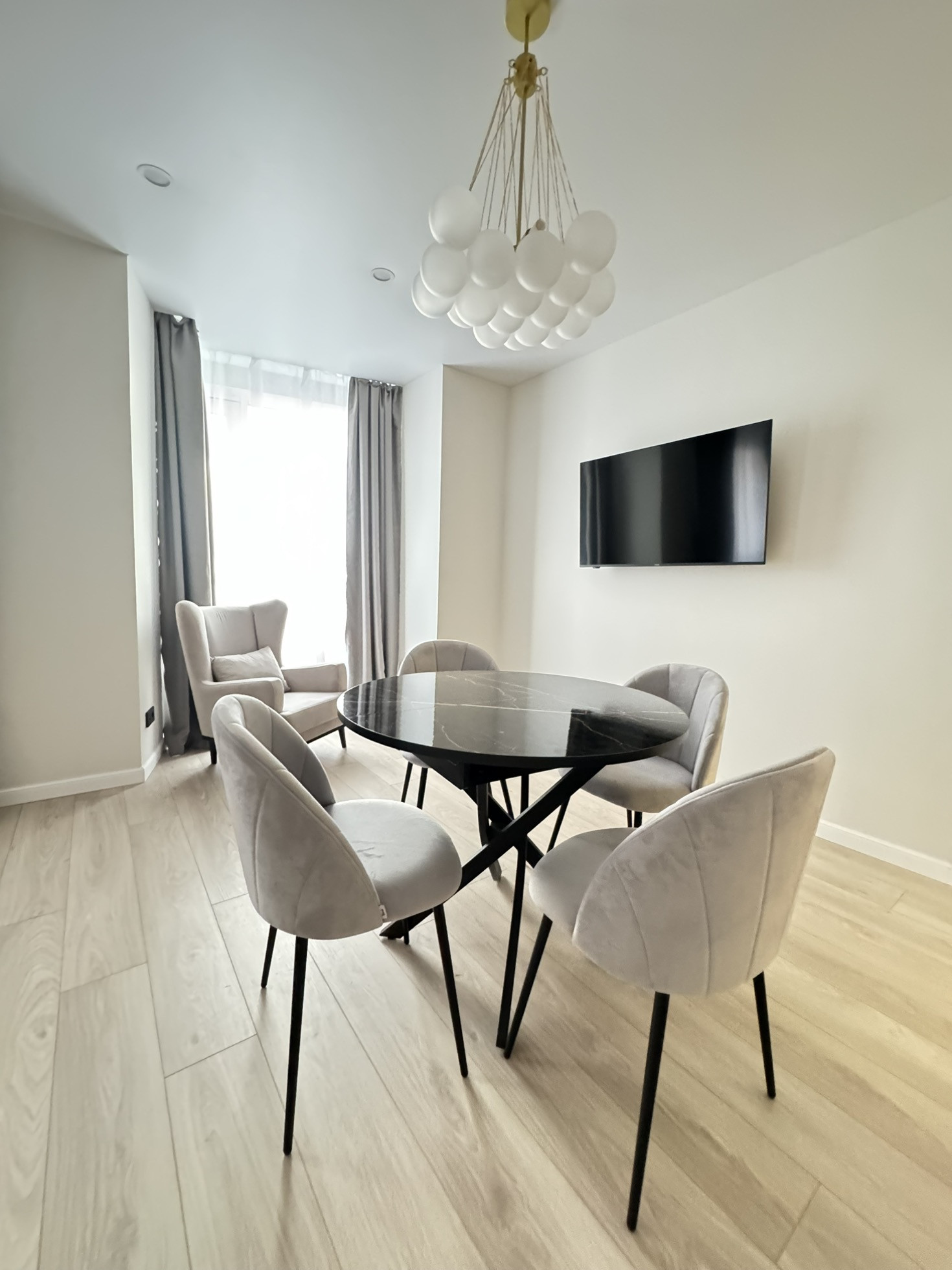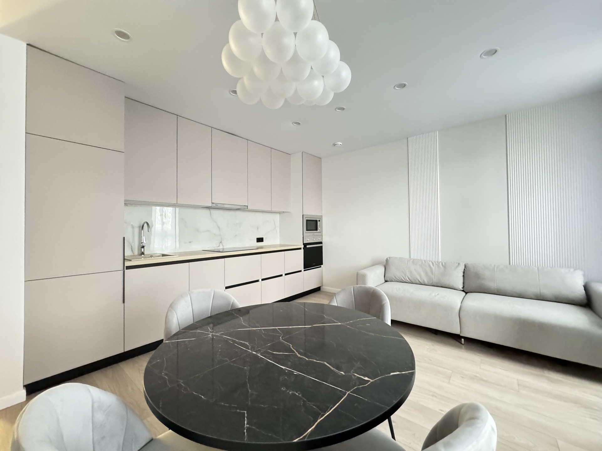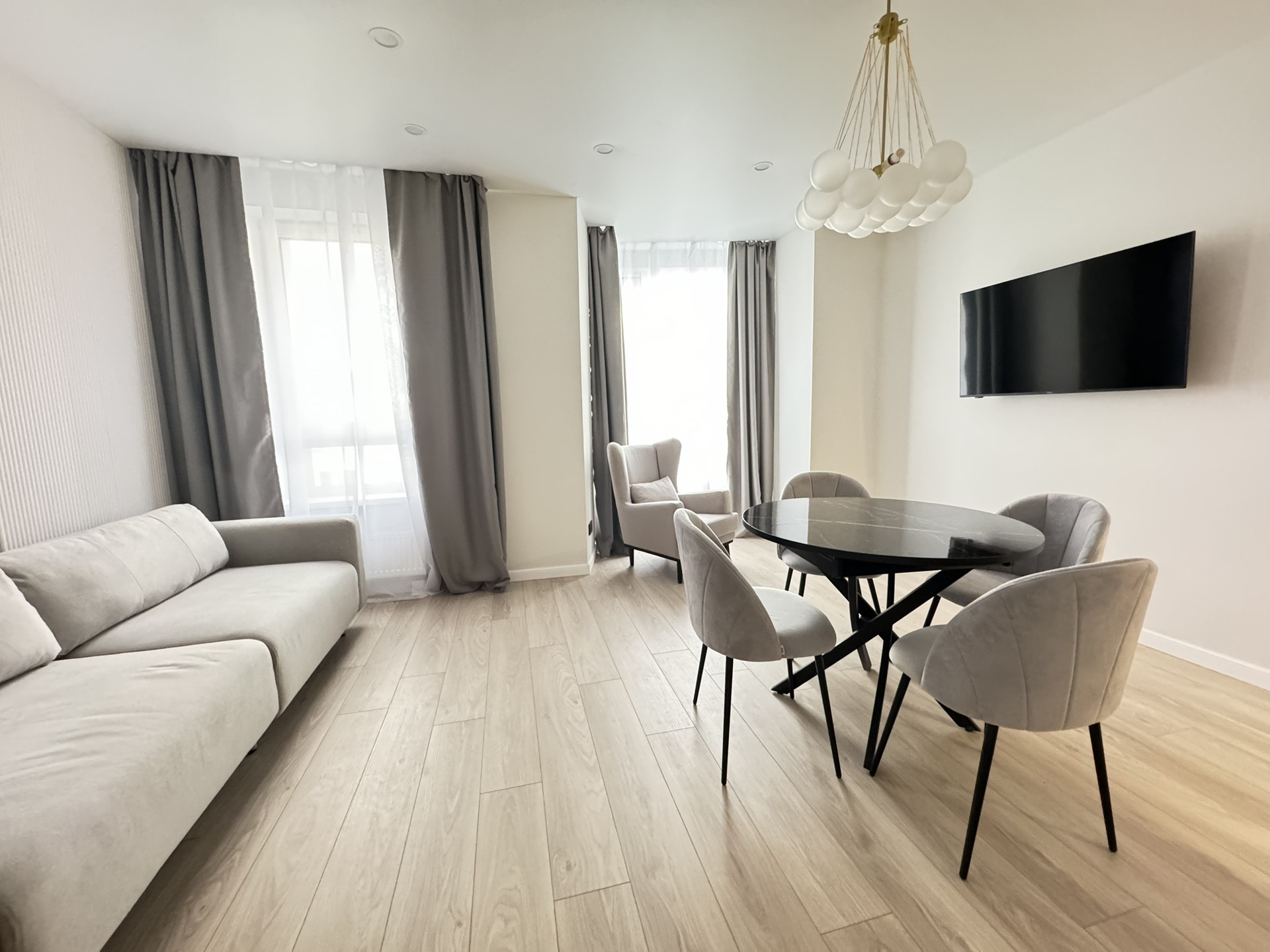 Квартира укомплектована всей необходимый мебелью и техникой ( кондиционер, холодильник, посудомоечная машина, микроволновая печь, индукционная поверхность, стиральная машина)