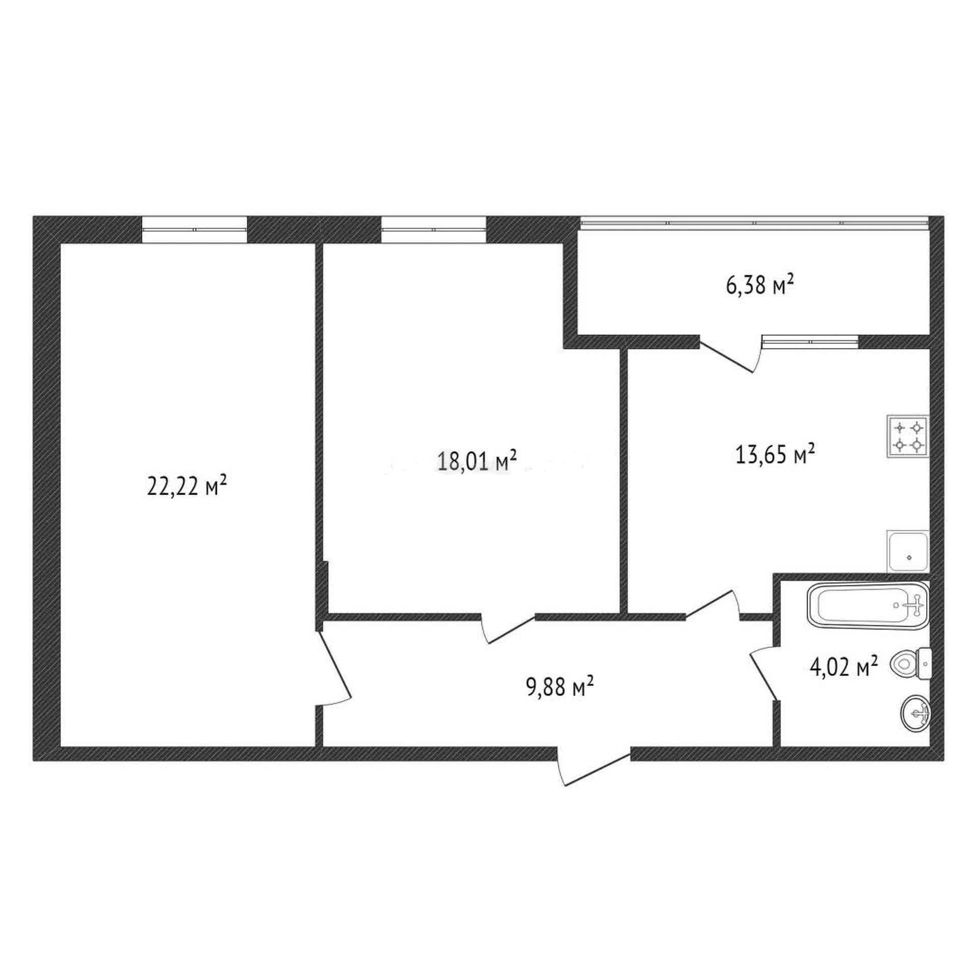 Жилая площадь 55 м2